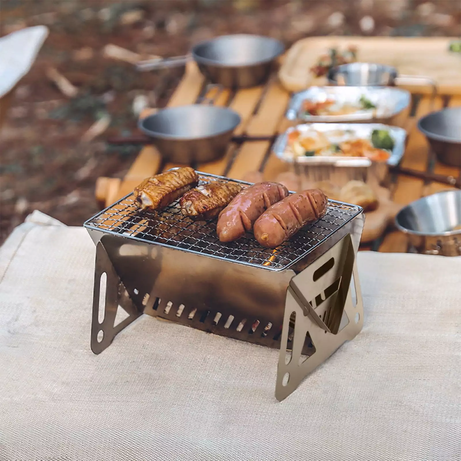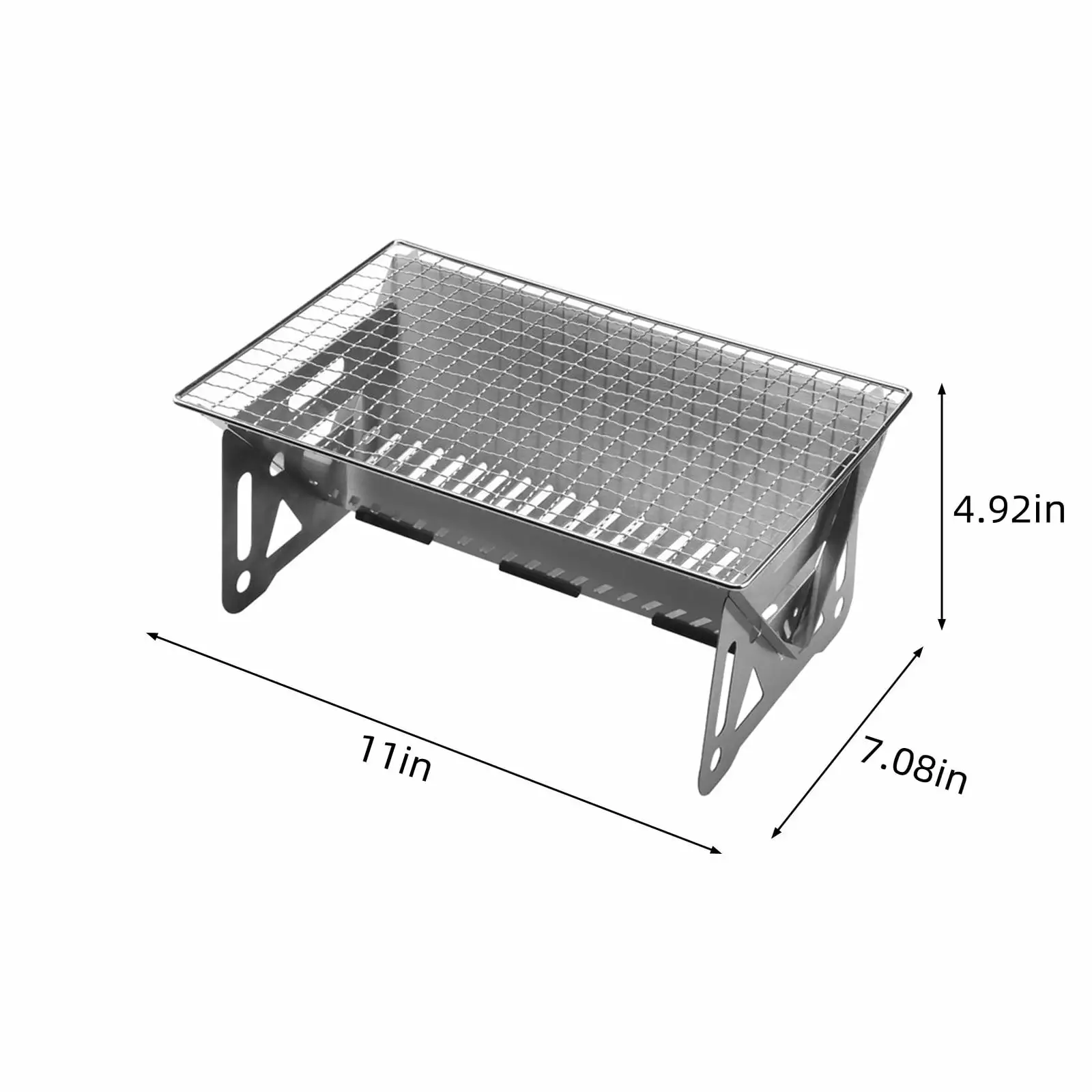 - [Lightweight & Portable]Camping BBQ Grill is lightweight and portable. 0.7 Kg. folded and packed in box 10.6×7.48×1.97 Inch. and the BBQ grill opened size is 10.43×7.28×2.75 Inch. big space for use but small package is easy carry & storage.Not screws needed and easy to set up.removable grill and mess-free ash catcher for easy clean-up.
