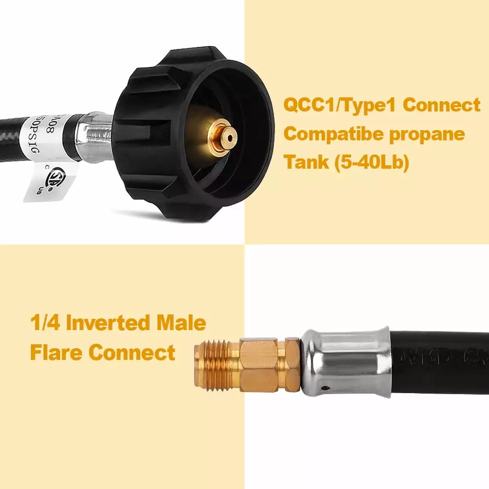 GasSaf RV Propane Hose Pigtail- 1/4 Male Inverted Flare