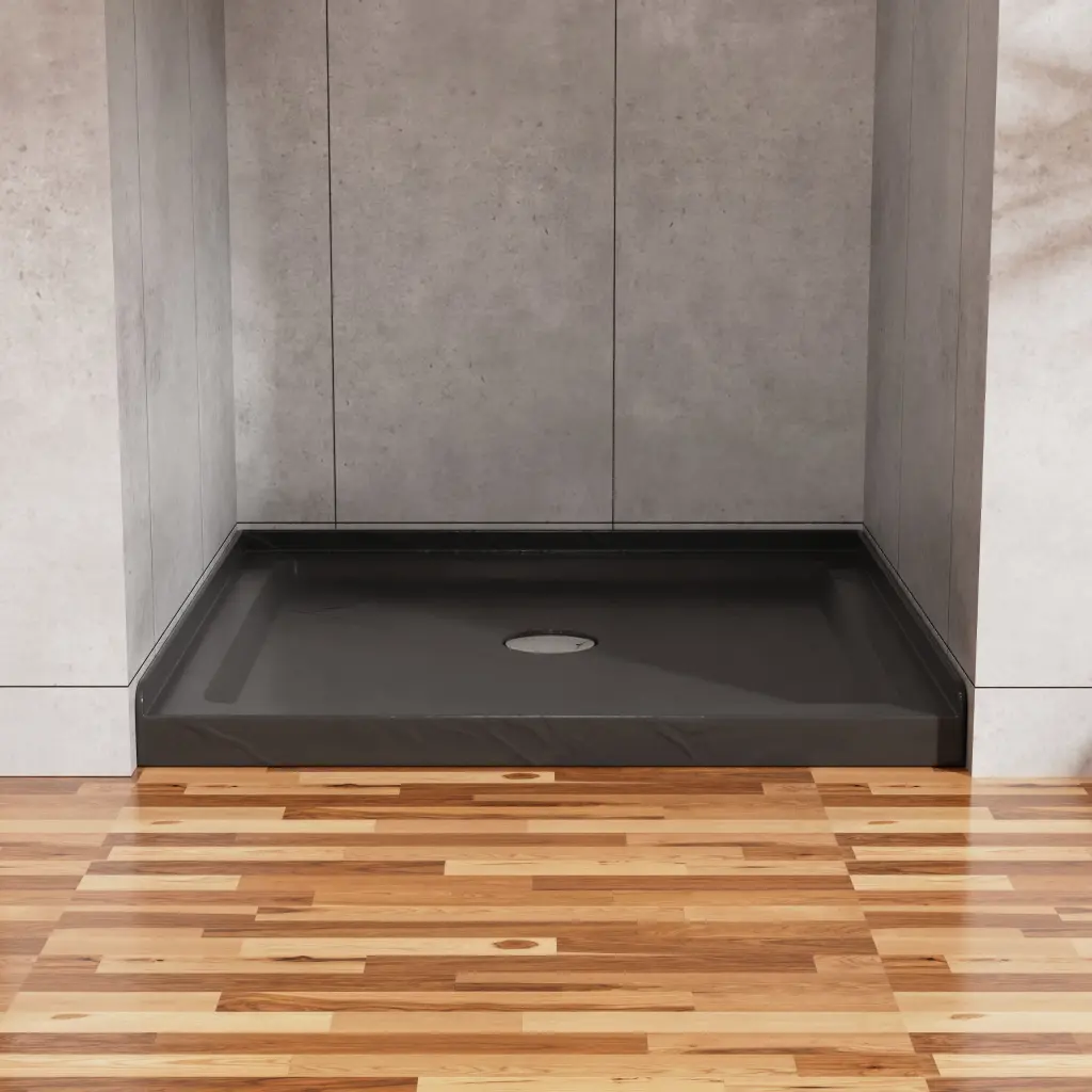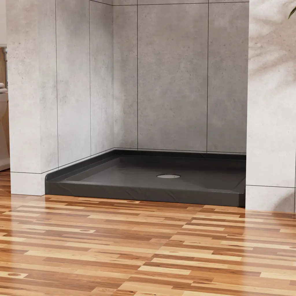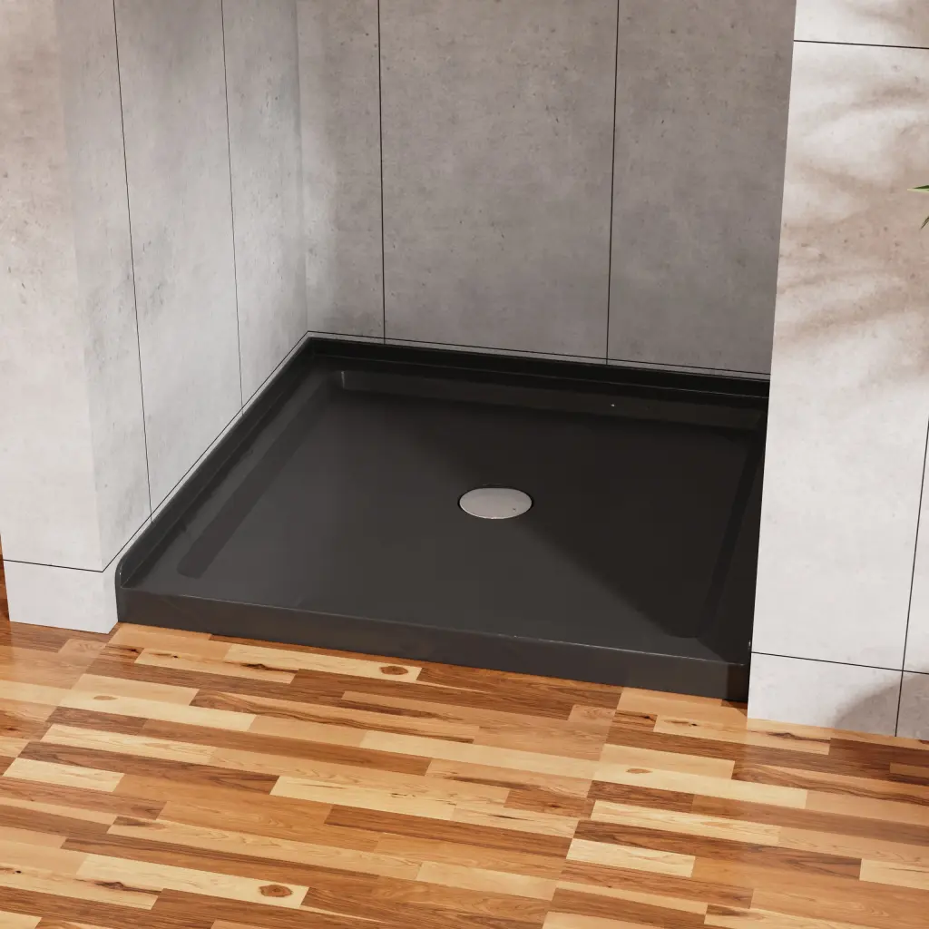 Goodyo 36″x36″ Shower Base 3.5″ Height Anti-slip Acrylic Center Drain Single Threshold Shower Base in Slate Black Specification: Single Threshold Shower Base Safe corner 3-side alcove can well prevent water from leaking.Advice: it is better to install the base before the wall tile is ready, so the alcoves can be we
