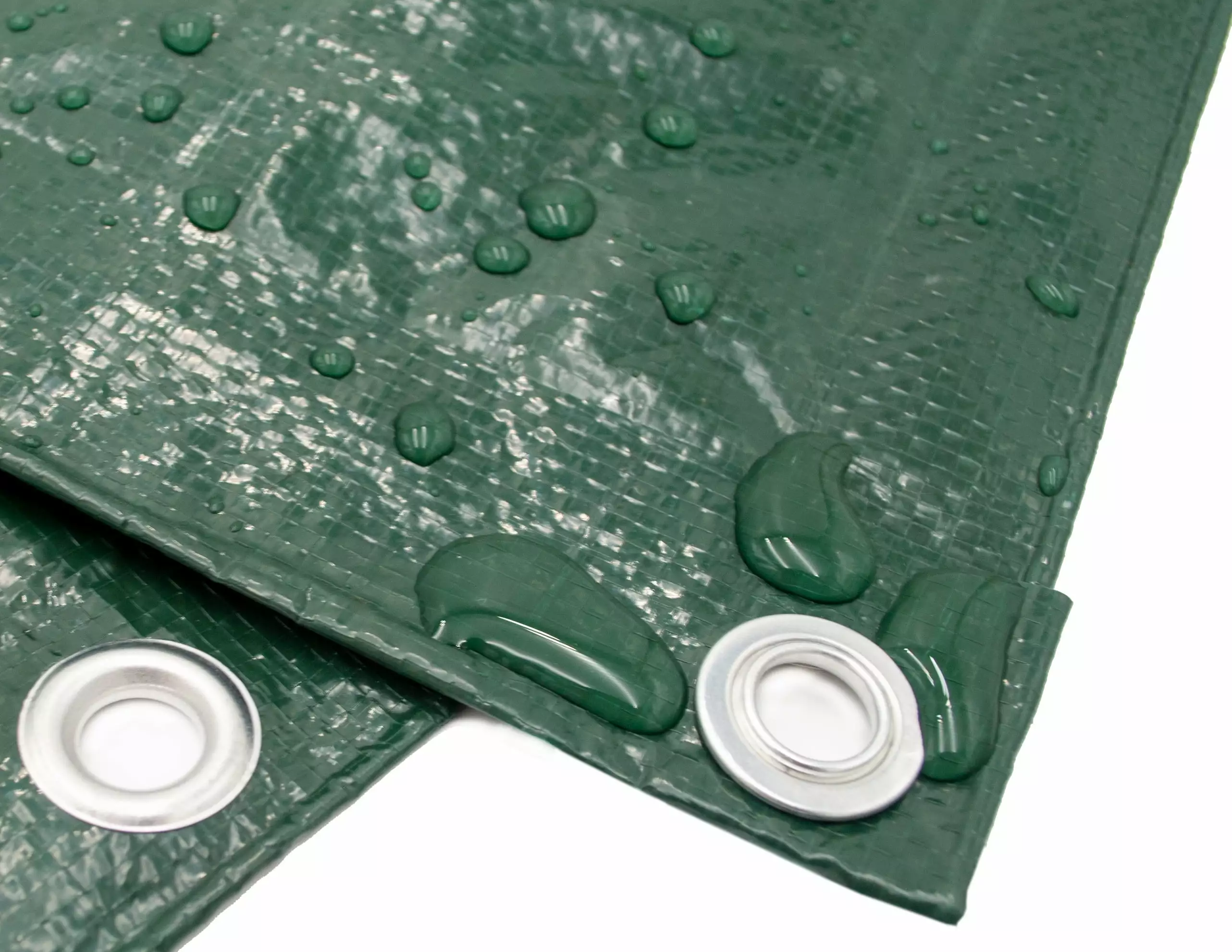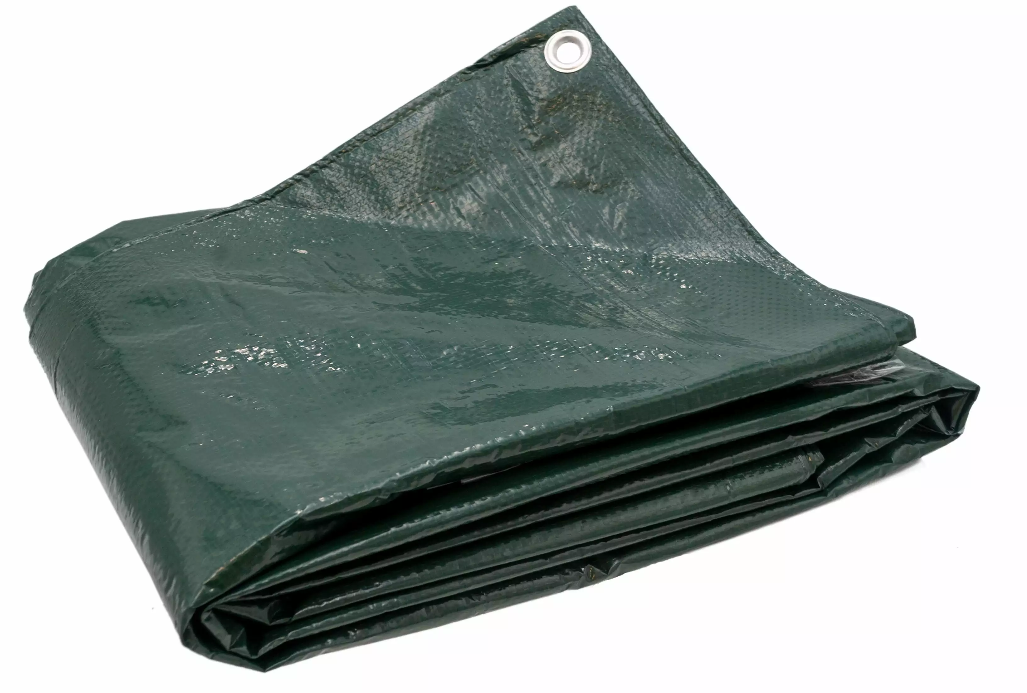 Harpster Tarps Medium Duty Forest Green Tarp by Tarps Direct is waterproof as well as mildew. acid and tear resistant. At 5 Mil thick and weighing 4.5 ounces per square foot. it is easy to transport and handle while being more durable than an economy blue tarp. Made of laminated polyethylene with a weave count of 10 x 10. Grommets are spaced approximately every 36 inches and at the corners.