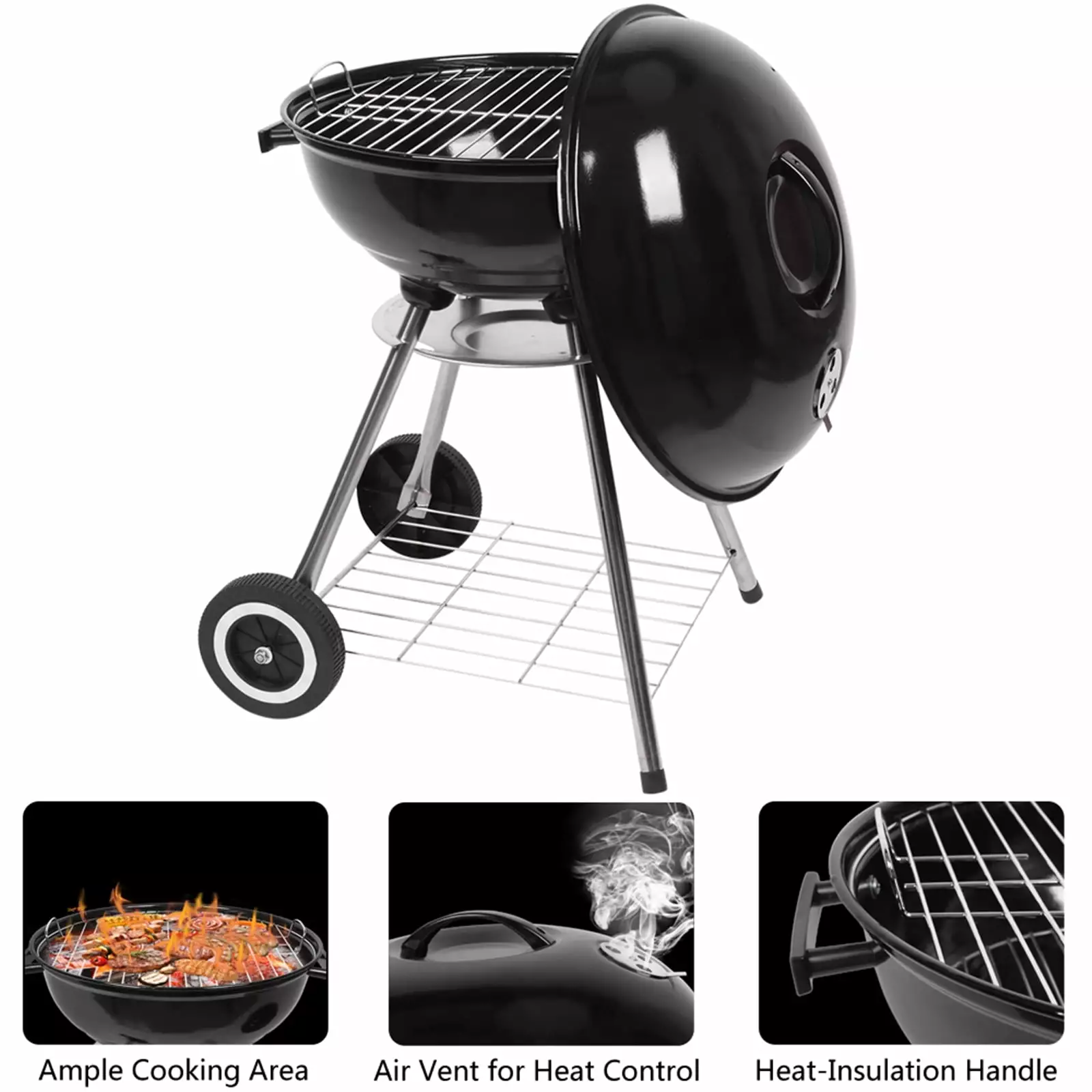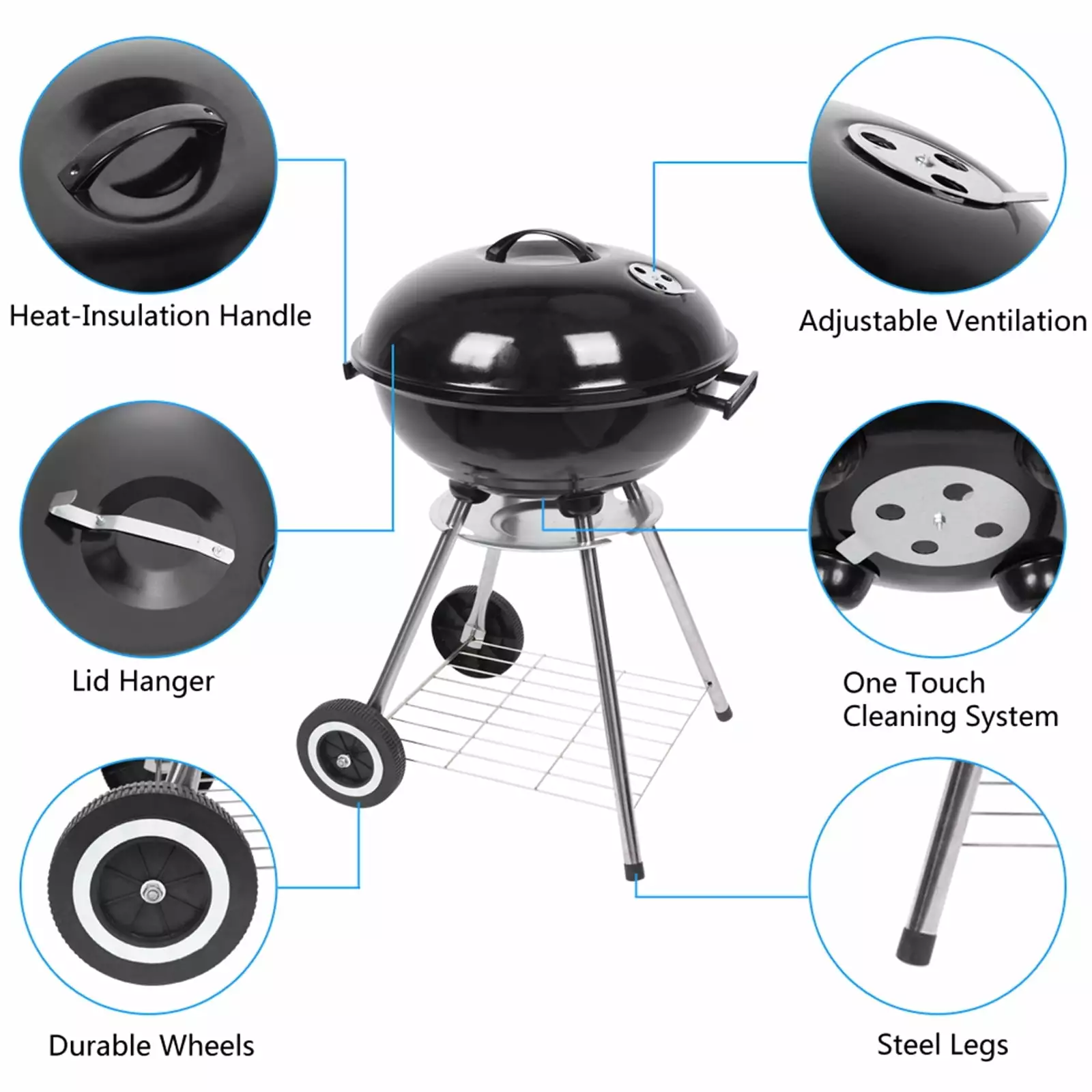 - Holes of black charcoal grilling at base of bowl allow for sweeping cooled ashes into grill ash catcher