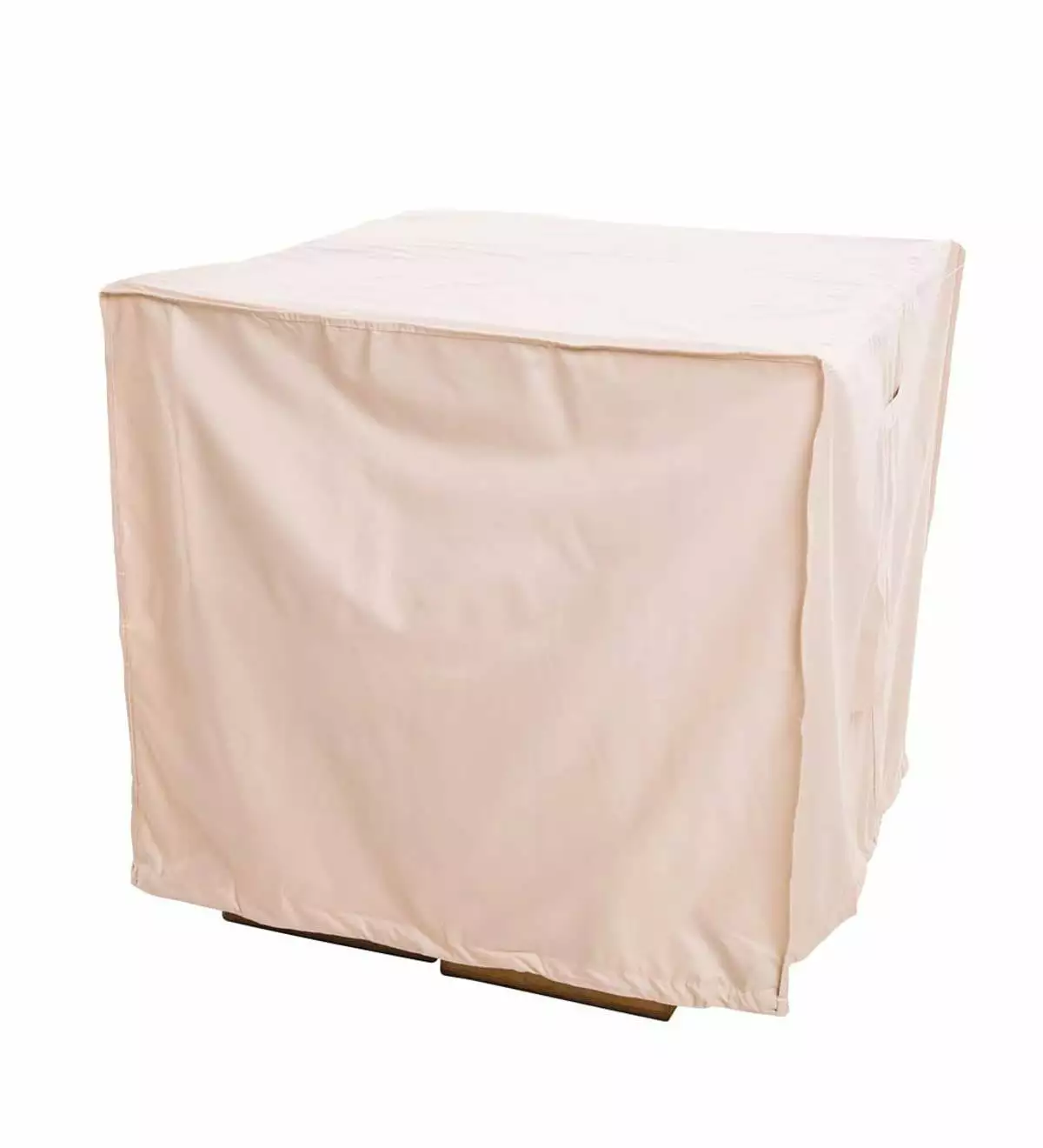 Our high quality Deluxe Square Air Conditioning Unit Cover withstands the sun. wind. rain and extreme temperatures. Two layers of tough polyester fabric protect your outdoor investment against moisture damage C rain runs right off. Covered vents allow for air flow. helping to prevent mildew during storage. Sturdy handles make this AC cover easy to use. while elastic toggle ties keep it secure. The attractive sand color makes this outdoor furniture cover look great and resists fading.