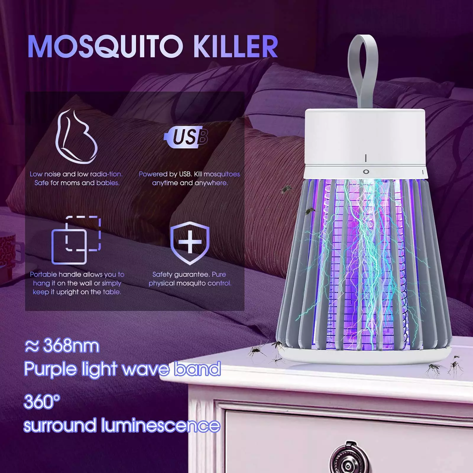 PORTABLE & REECHARGEABLE: Versatile design allows you to hang the exterminator using the built-in hanging loop or stand on a table or flat using the sturdy base. The inner of the exterminator is made of ABS with a delicate and compact appearance that can be held in one hand. Perfect for outdoor/indoor camping. enclosed patios. garages. decks. trash cans and more.