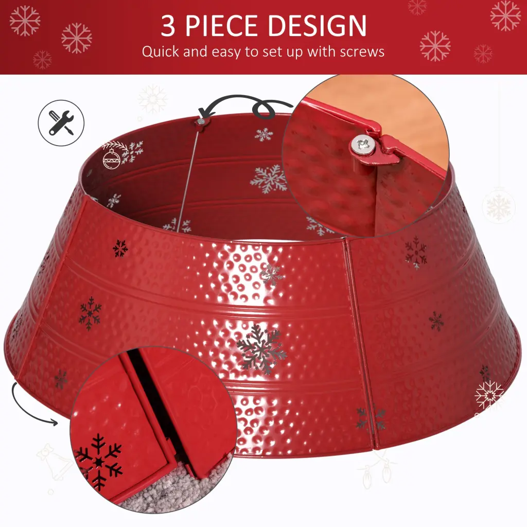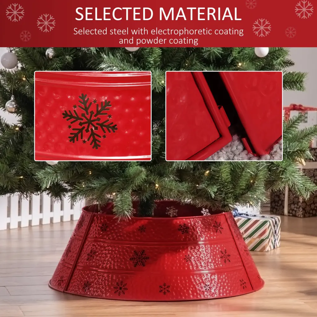 Homcom Christmas Tree Collar, Alloy metal Tree Ring Skirt, Home Xmas Decoration for Christmas Tree, 26″ x 26″ x 9″, Red Characteristics: Christmas Stand Cover: This Christmas tree collar hides your Christmas tree stand, and keeps your kids, dogs, cats and other animals away from your Christmas tree base. Holiday Decor: