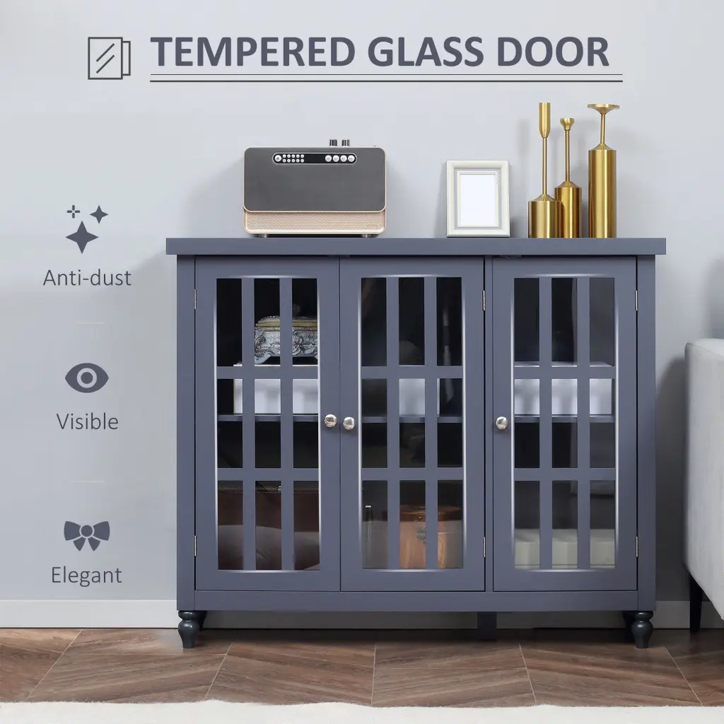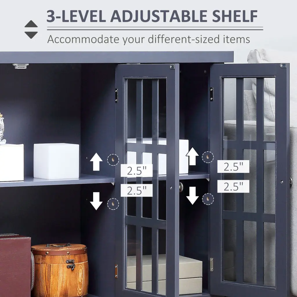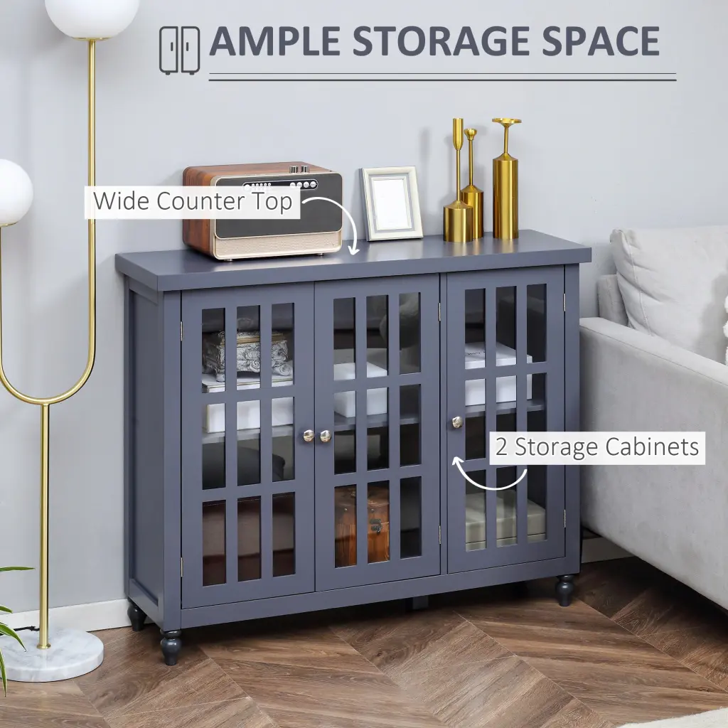 Homcom Sideboard Buffet Cabinet, Credenza, Coffee Bar Cabinet with Storage, Glass Doors and Customizable Shelves, Gray Characteristics: Ample Storage Space: This kitchen sideboard has two storage cabinets, each with an interior shelf that’s adjustable to fit different-sized items you need to store like daily access