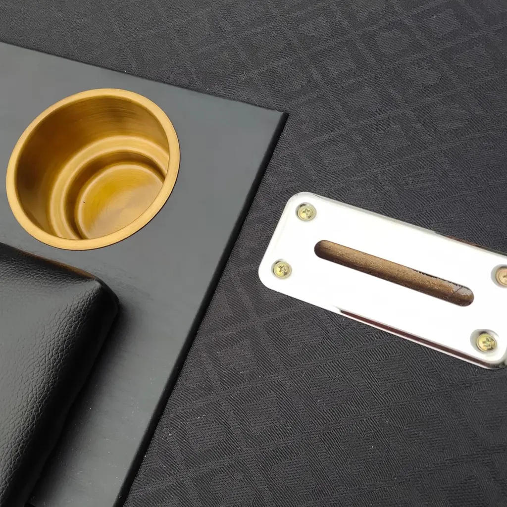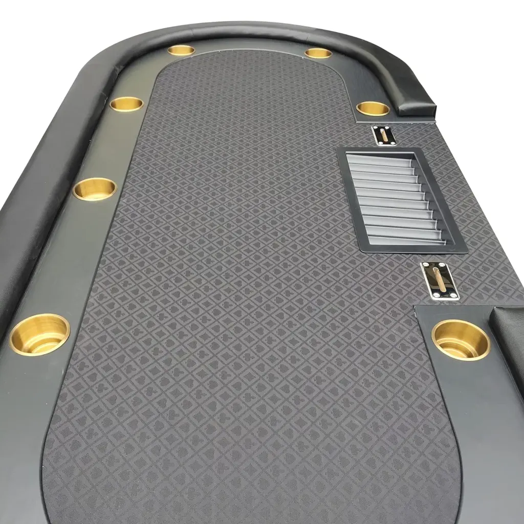 Ino Design 96″ Elite Oval Dark Knight Water resistant Felt Poker Table Top Only Black Characteristics: Oval Shape Table: Black felt playing surface provides faster card slides. Wide Gaming useing Area: Equipped with 9 jumbo size cup holders in racetrack, and dealer poker chip tray rack. Luxury Vinyl Armrest: Ultra wide sof
