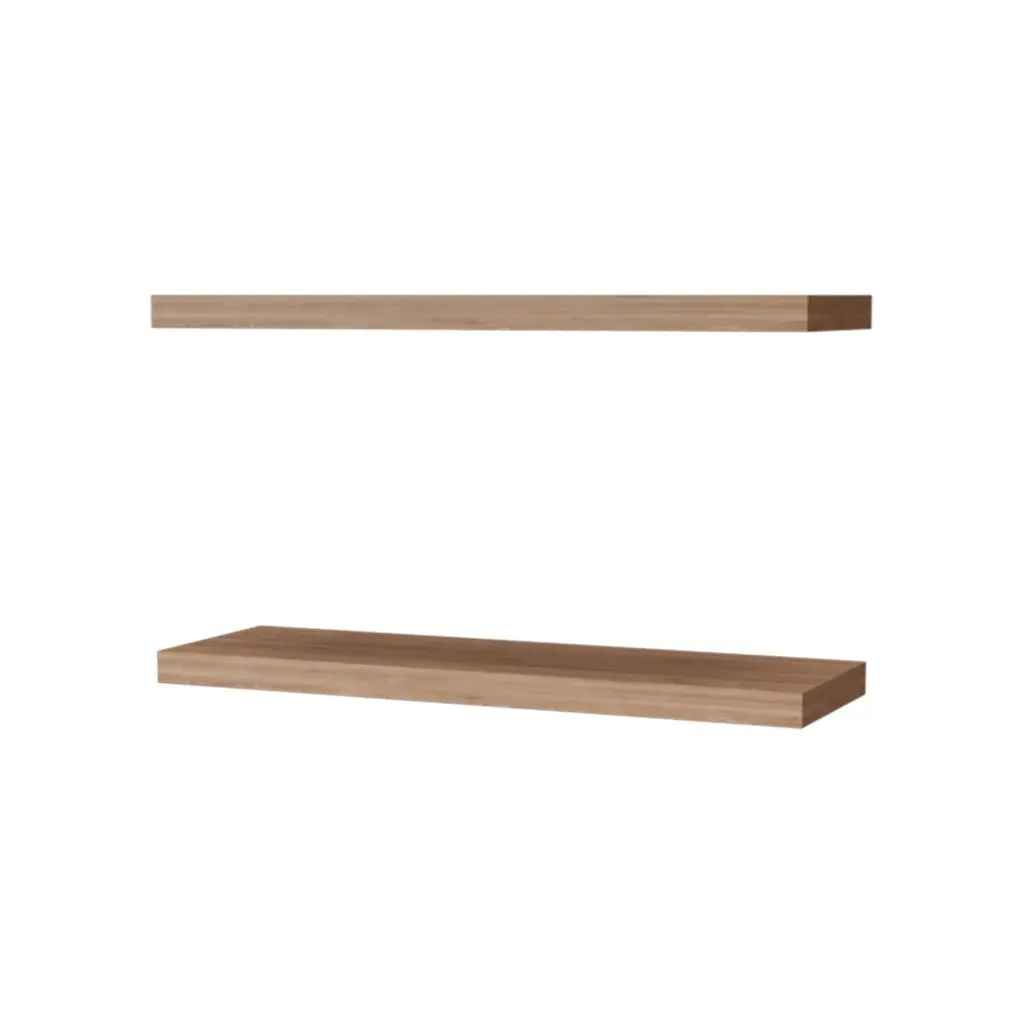 Iva Floating Shelf in Melamine x2, Pine Specification: Iva Floating Shelf in Melamine x2, Matt Grey “Transform your living room with our set of two recessed shelves, perfect for adding a touch of elegance and functionality to your home. Measuring 31.5 inches wide each, these shelves are designed to fit seamlessly i