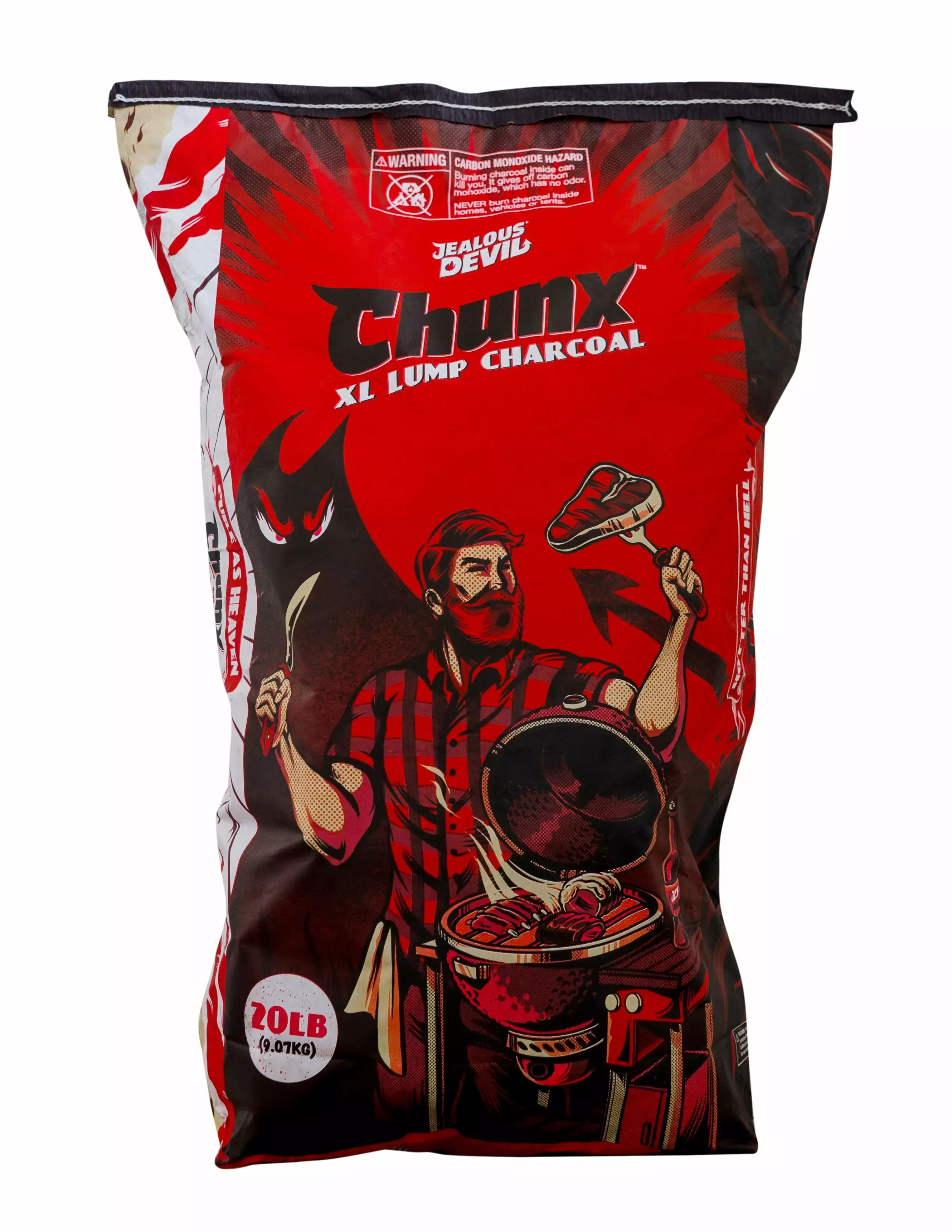 Elevate your grilling game to epic proportions with Jealous Devil Chunx XL 100% Natural Hardwood Lump Charcoal. Each colossal 20 lb bag is loaded with sustainably-sourced. extra-large chunks of ultra-dense South American hardwoods that burn like a dream. delivering sizzling temperatures over 1.100°F. With twice the cooking power and significantly less ash. you’ll not only taste the earthy flavors woven into your BBQ masterpieces. but also feel the power in your hands. Say farewell to unwanted sparking and popping. and embrace an unrivaled grilling experience. With Jealous Devil Chunx XL Hardwood Lump Charcoal. you’re not just grilling; you’re ruling the BBQ realm.