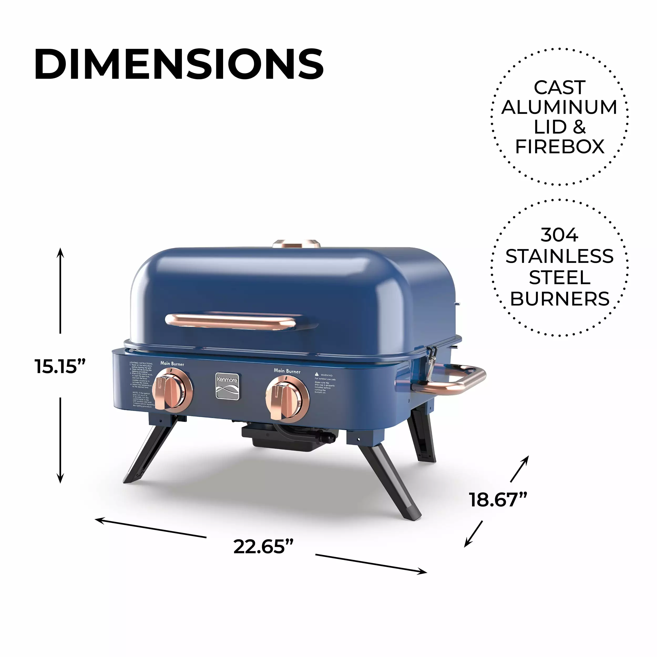 Elevate your outdoor cooking experience with the new Kenmore 2-Burner Portable Tabletop Retro Gas Grill. This two-burner small propane gas grill is designed for on-the-go grilling. boasting a generous 343 square inches of barbeque grilling surface perfect for sizzling up to 9 burgers at once. With its sleek retro design and tabletop versatility. this small compact BBQ grill not only delivers style but also functionality. Equipped with flamethrower ignition and a warming rack. the Kenmore 2-Burner portable gas grill offers a total of 14.000 BTUs of heating power. Its compact size and side handles make it an ideal companion for camping. fishing. glamping. tailgating. outdoor adventures. parks. picnics. road trips. and BBQs on the go. Whether you’re embarking on family escapades or celebrating outdoor events. this portable outdoor gas grill ensures a memorable and flavorful experience. Experience the convenience of quick and efficient barbecue grilling wherever your journey takes you. Invest in the Kenmore 2-Burner Retro Portable Gas Grill for a perfect blend of style. portability. and impressive outdoor cooking capabilities.