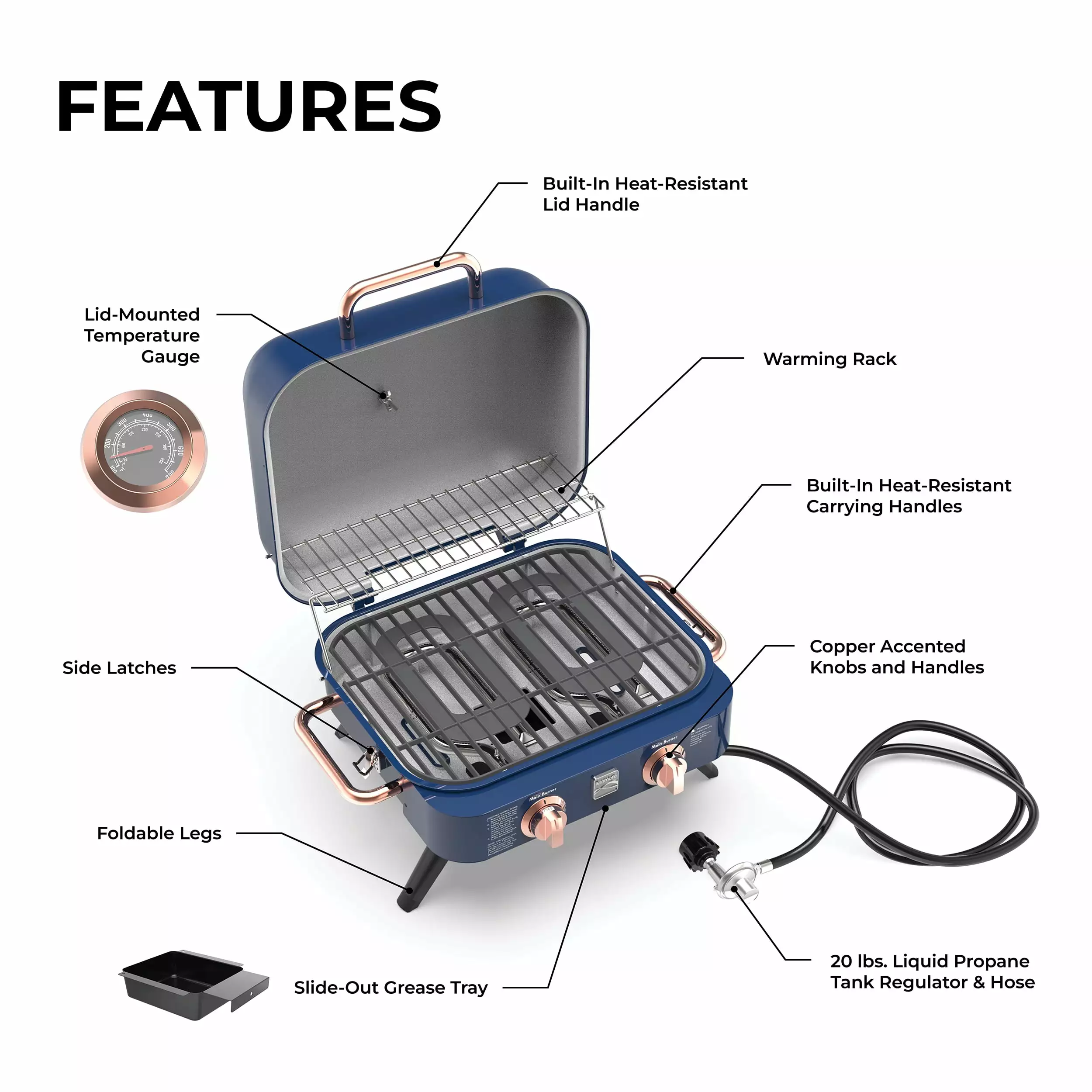 | Features | Rust Resistant. Heat Thermometer |