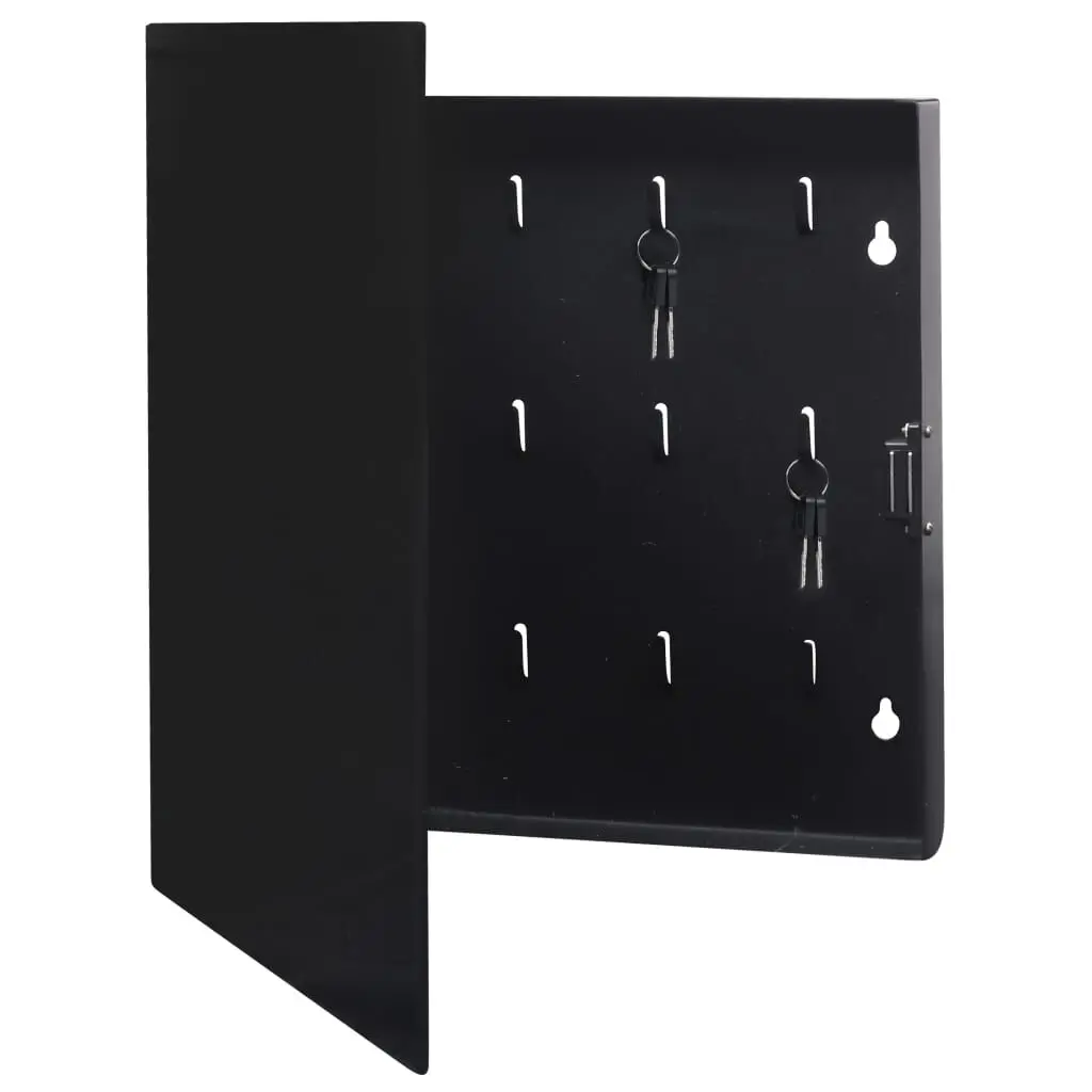 The key cabinet is made of strong powder-coated steel with 12 hooks in the cabinet, providing ample storage space for your keys. The magnetic front door is made of tempered glass and ideal for sticking notes, photos and other crucial items. Paper items are also held firmly in place on the cabinet front using one of the 6 magnets. Additionally, you can even write on the magnetic board with the pen. It is simple to clean with the included board wiper.