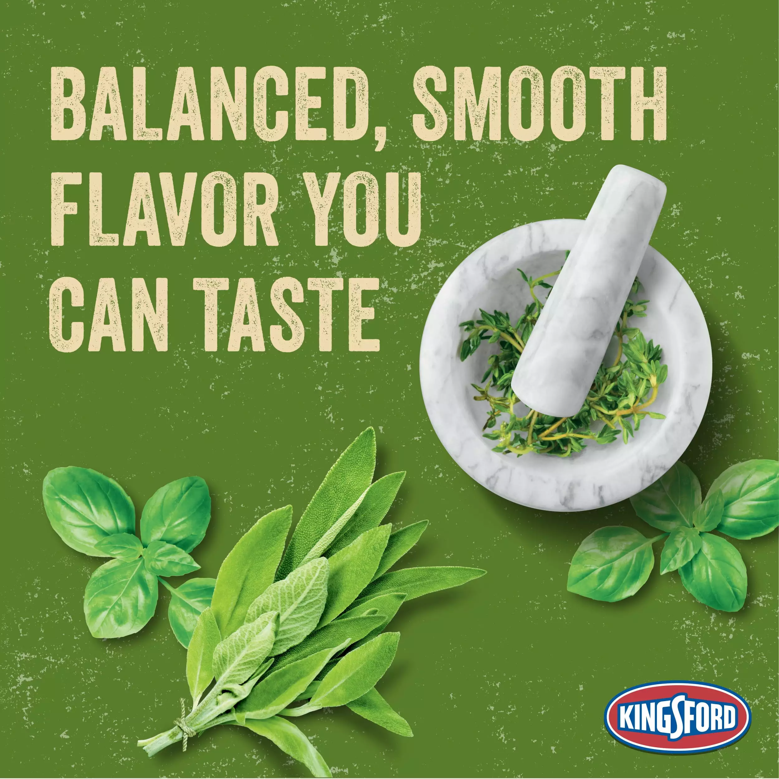 Labor Day and tailgating are coming. get ready! Elevate your tailgate grilling with Kingsford Signature Flavors Flavor Boosters with Basil. Sage and Thyme. Basil. sage and thyme come together for unique. one-of-a-kind taste. Get smooth. balanced flavor you can see. smell and taste with Kingsford Flavor Boosters. The steady release of basil. sage and thyme flavors make for an elevated grilling experience to any grilling experience. Kingsford Signature Flavors Flavor Boosters are easy to add to any charcoal grill* just start your grill. add flavor boosters to your charcoal and enjoy. The 100% real spice flavor pairs well with chicken. turkey. fish. lamb. pork. shellfish and vegetables. Place 6 or more Kingsford signature flavor boosters onto lit coals and replace grill grate. To increase smoke intensity. use additional flavor boosters. Add food and keep grill closed to maximize flavor. Storing your Kingsford Flavor Boosters in a cool. dry place will help you get optimal performance from your bag. Also available in 100% real spice pellets and blended charcoal briquettes.*See back of pack for instructions.