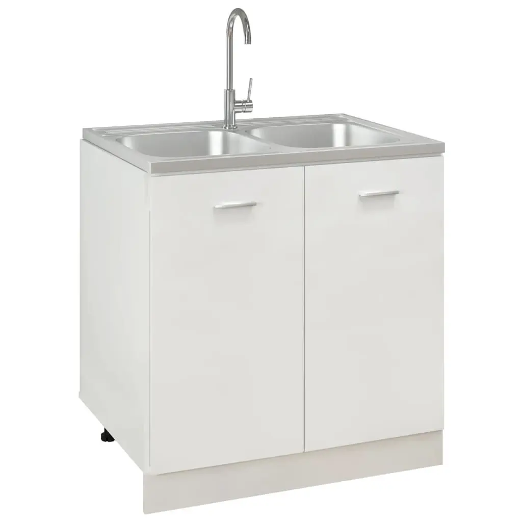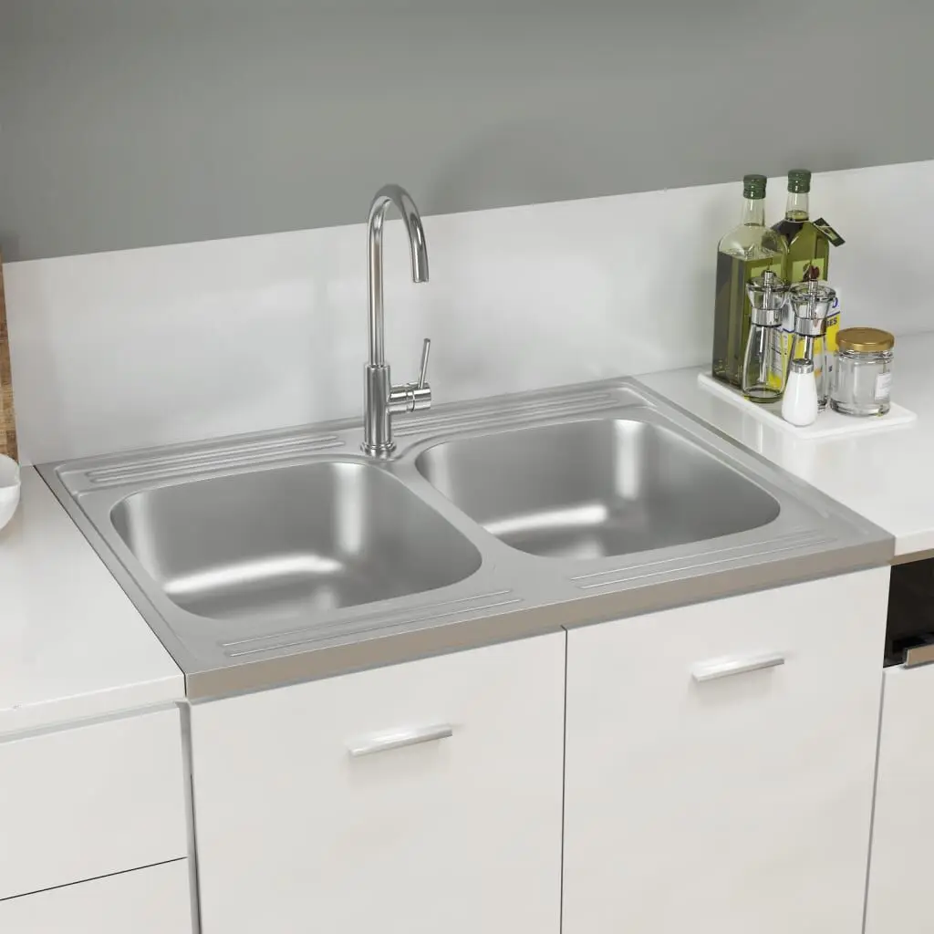 This kitchen sink with double basins and a drainer set is an ideal addition to your existing kitchen decor.