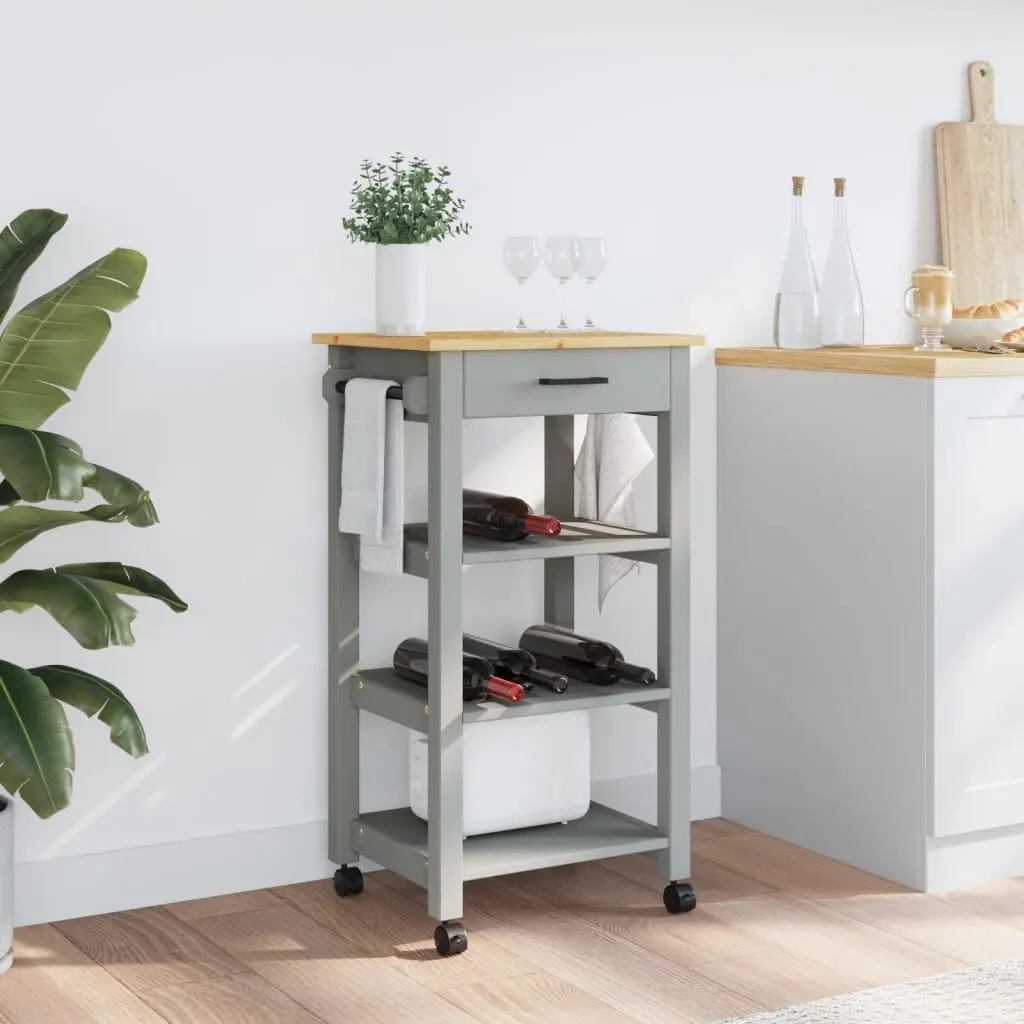 - Long-lasting material: Solid pine wood is a beautiful natural material. Pine wood has a straight grain, and the knots give the material its signature, rustic look. Made of solid pine wood, this kitchen storage trolley is durable and sturdy.