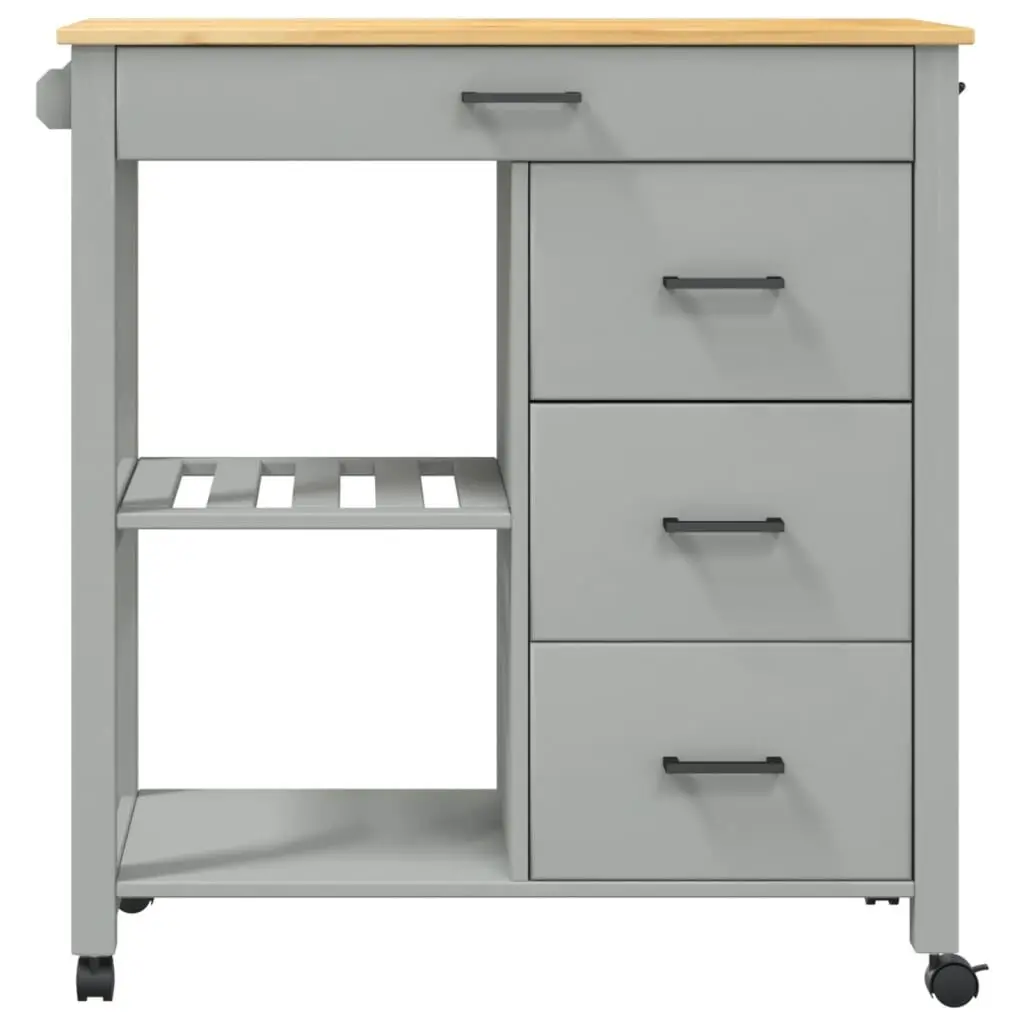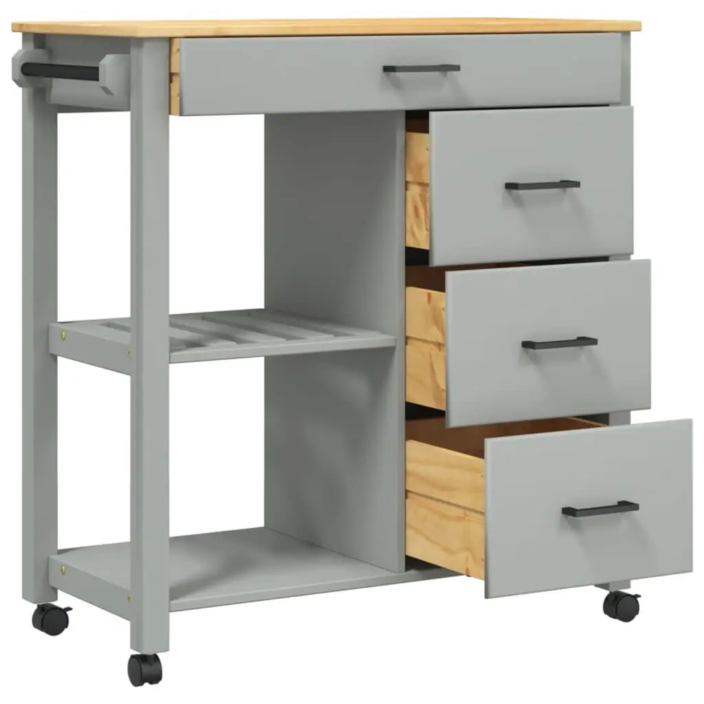 - Long-lasting material: Solid pine wood is a beautiful natural material. Pine wood has a straight grain, and the knots give the material its signature, rustic look. Made of solid pine wood, this kitchen storage trolley is durable and sturdy.