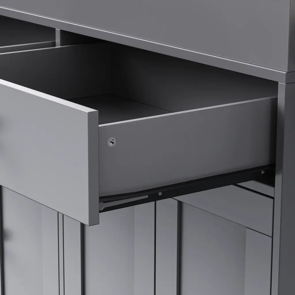 [Sturdy and Safe] The kitchen storage island is made of sturdy, eco-friendly material P2 grade particleboard and Mdf. This ensures that it will not be easily damaged when in use and you can use this product freely. The surface of both the tabletop and the product is smooth, comfortable to touch and sturdy. After the challenge of prolonged use, you can still enjoy the convenience of space storage that this product brings.