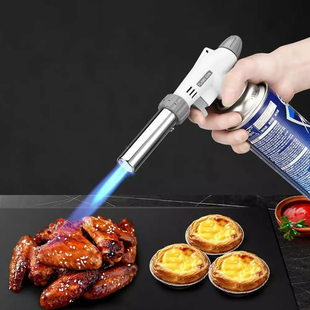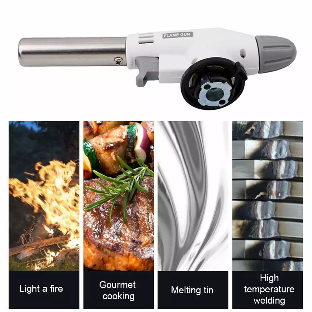 Portable Welding Butane Gas Torch Gun Flamethrower Adjustable Barbecue Flame Torch Nozzle Ignition Lighter for Outdoor Camping Cooking Heating BBQ Soldering Tool