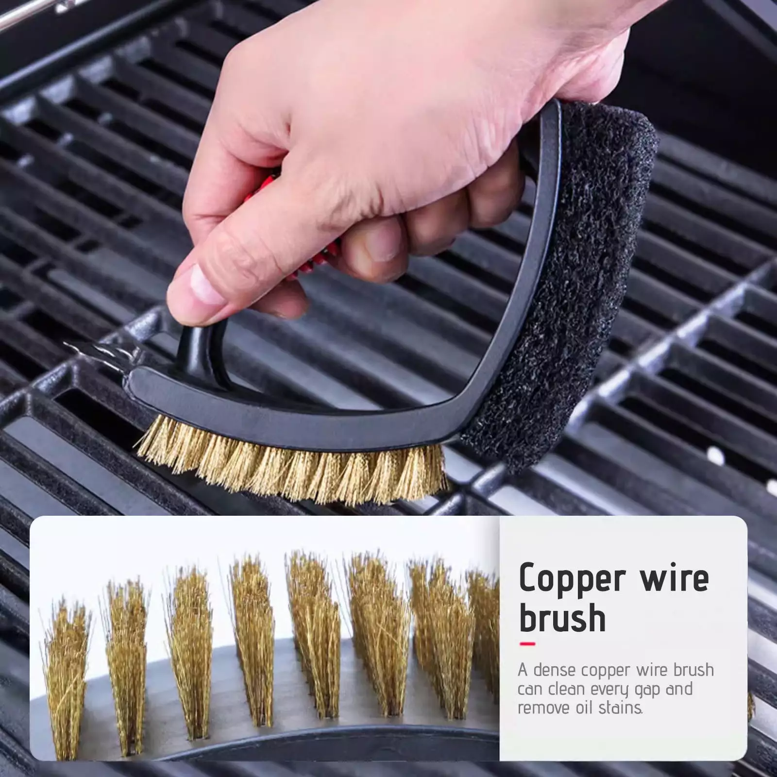 stainless steel and copper to ensure that the grill cleaner will not
