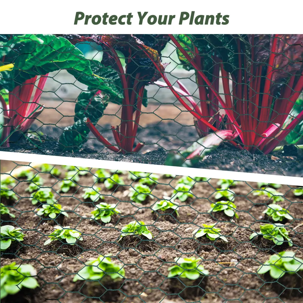 PREMIUM Long Lasting Quality: Our poultry netting chicken wire is made using high quality marital and green coated plastic before packing to ensure long-term use. Perfect for making garden fences, chicken enclosure, livestock confinement, runs and cages for pets, lawn netting and more!