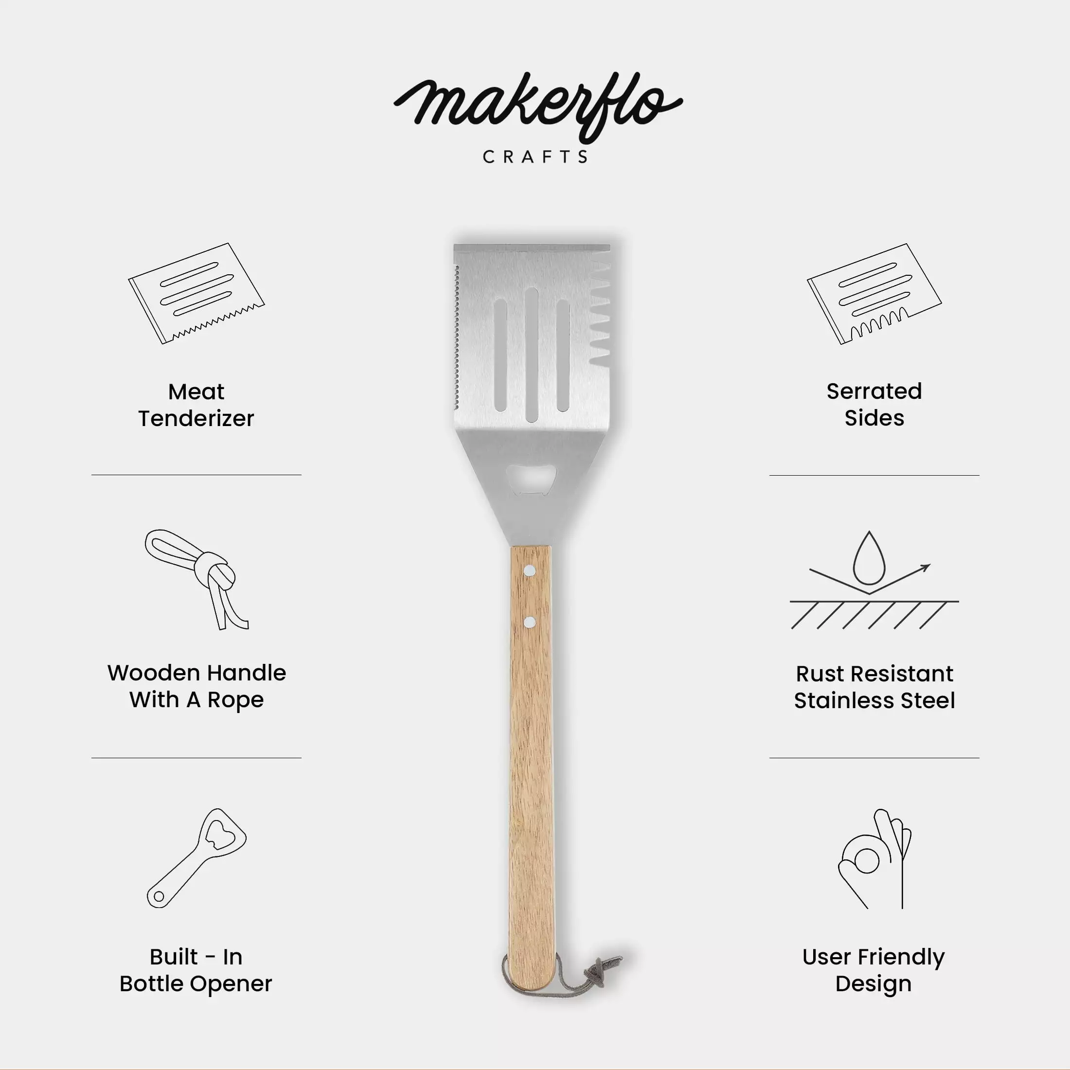 - Unique Gift: Makerflo Handmade Barbeque Grill Spatula makes a great gift for any Man in your life! Whether you are shopping for Father’s Day Gifts. Gifts for Dad. Grandpa. Son. Boyfriend. Husband. Gifts from Daughter to Dad. this Wooden Barbeque Grill Spatula is sure to be a unique and special gift. These grill spatulas are the perfect barbeque accessories and make for an ideal gift for any avid griller. cook. chef. It is the perfect gift for him for Father’s Day.