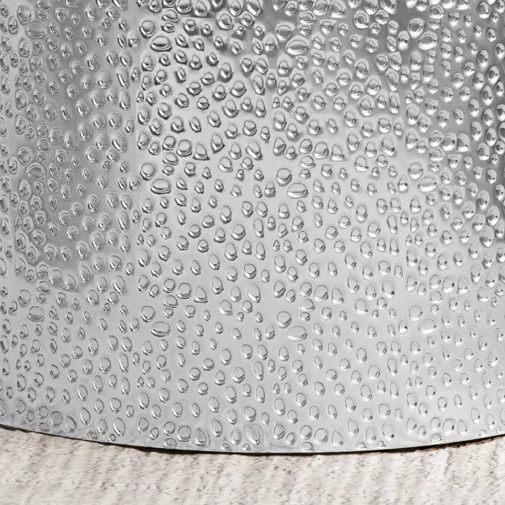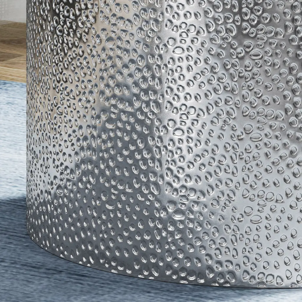 HAMMERED Metallic: This table features a hammered surface to create a gorgeous textured look. This finish allows this piece aesthetic versatility, blending seamlessly with a range of decor styles.