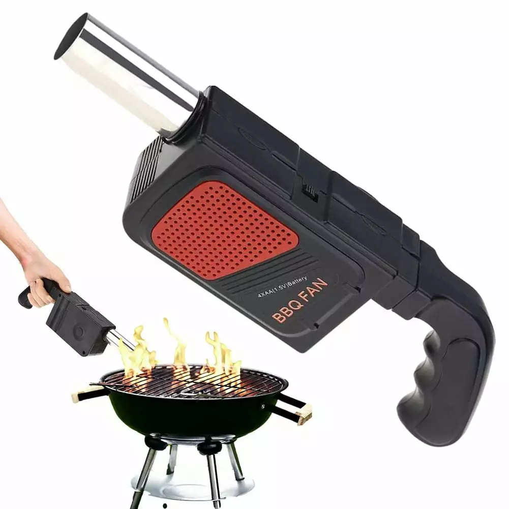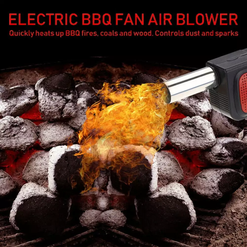 - This electric barbecue fan is portable. light and safe to use. The blower discharges a small amount of air to speed up the coal burn while keeping sparks and dust out of your ingredients.