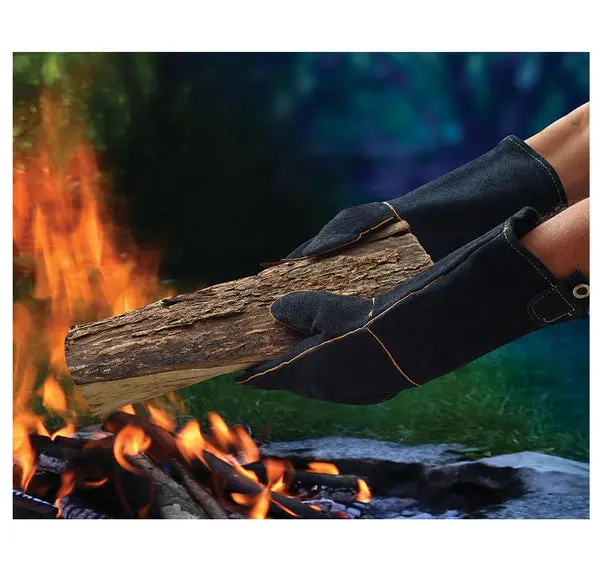 Leather BBQ Gloves are long enough to protect even forearms from the heat of fires. These gloves are perfect for building fires, grilling, and campfire cooking. Highlights: Material: Leather Color: Black Extra long to keep hands safe from grill Perfect for grilling or camping Comfortable fit with rugged construction Lo
