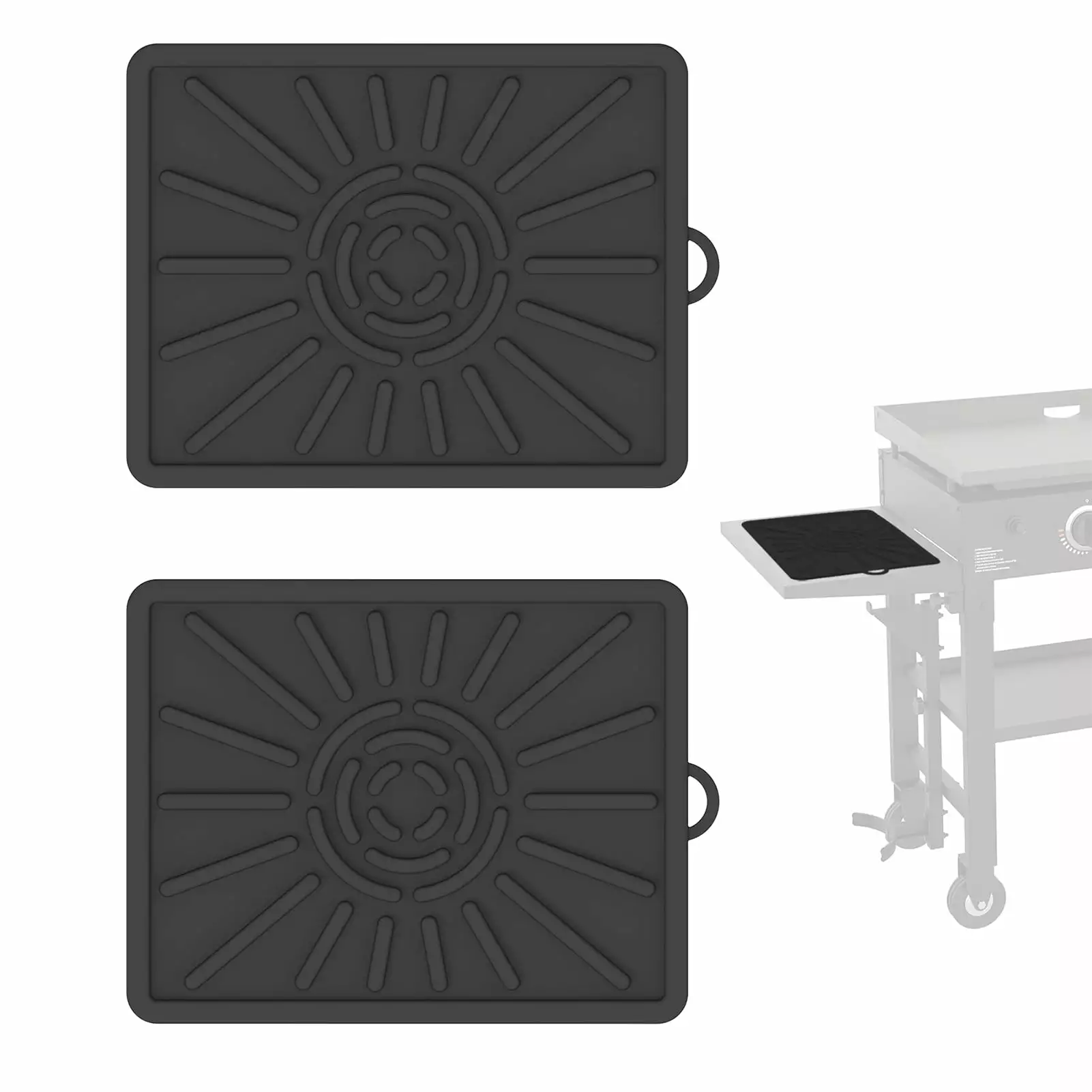 Premium grill mat is a versatile and essential kitchen tool made of 100 food-grade silicone for ultimate safety and durability. With a heat resistance ranging from -60 F to 500 F. these BPA-free mats are perfect for use on the grill. in the oven. microwave. or freezer. Not only can they be used as baking sheet mats. but they also serve as drying mats. pot warmers. counter mats. table mats. coasters. anti-scald mats. bottle openers. pot holders. spatula and spoon rests. and more. The irregular concave and convex design prevents slipping and raised edges ensure no spills. Whether you’re in the kitchen. cafe. restaurant. bakery. or at home. these versatile mats are essential for serving snacks. meals. and catering services. out on this must-have kitchen tool!