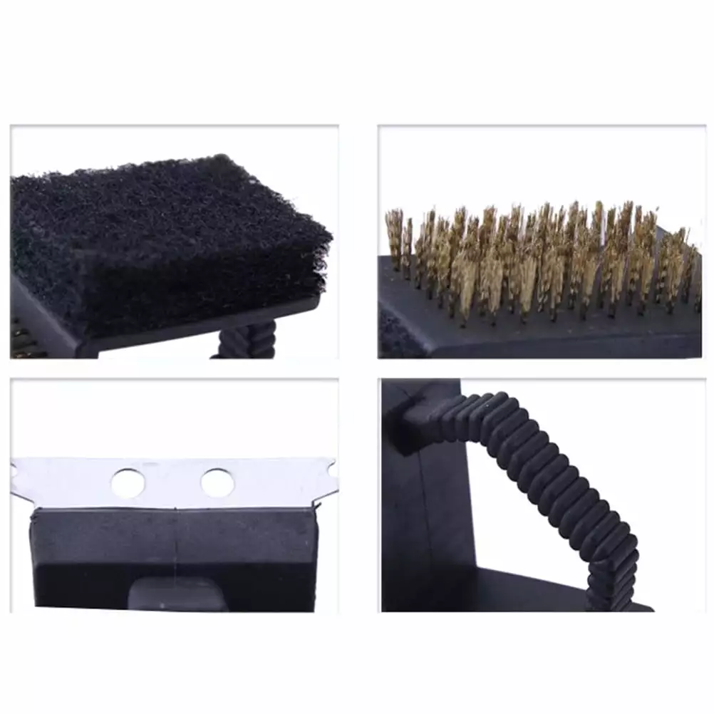 This excellent combo 3-in-1 deluxe grill brush with heavy duty features for fantastic barbecue cleaning. Regardless of the age. make or model of Grill. Gas or Charcoal. the ergonomic design allows you to keep hold with a firm grip while lifting hot food from your barbecue to your guests waiting plate.