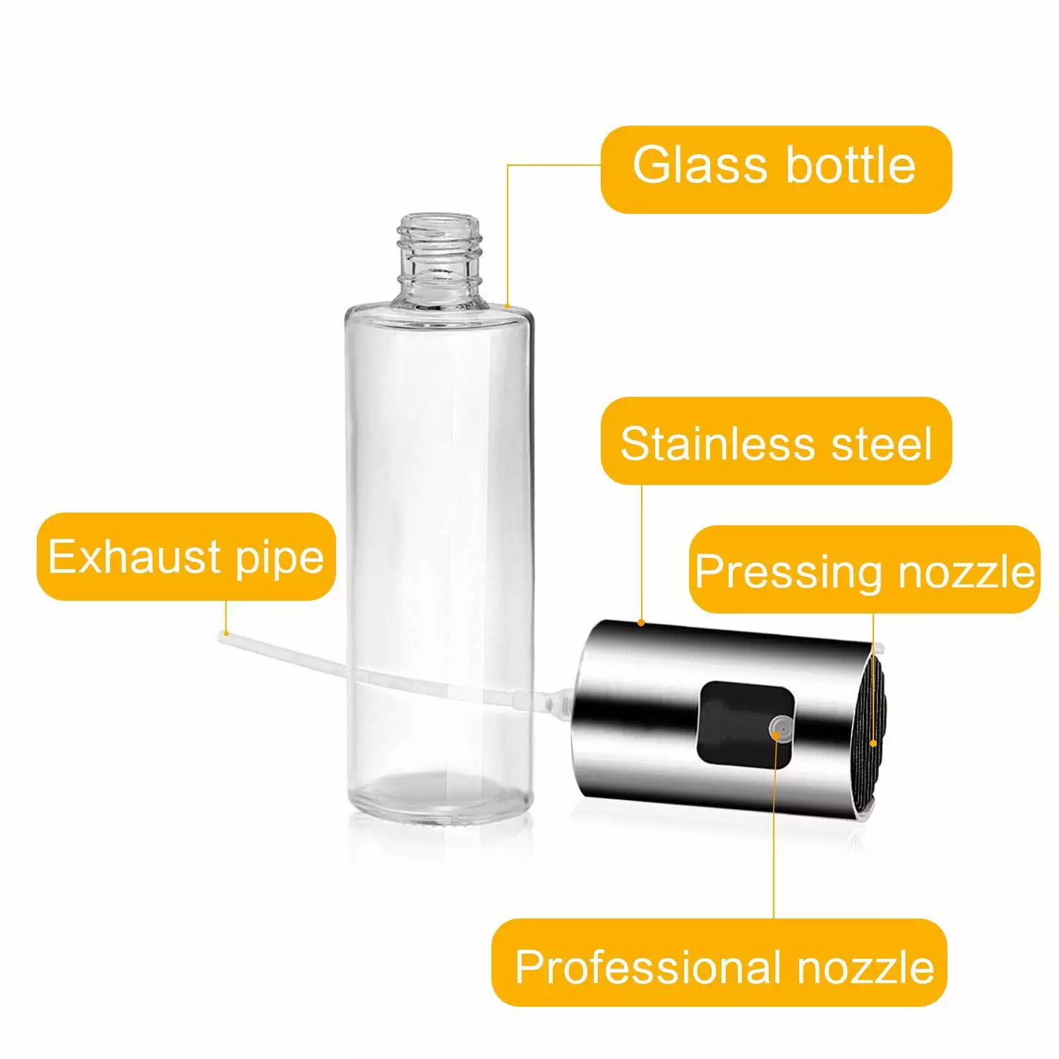 - Easy to Use Simply press the pump of a sprayer to produce a more uniform spray and control the amount of oil when cooking. The transparent bottle lets you know clearly how much oil is left. And you can clean the bottle easily. just unscrew the lid with warm water.