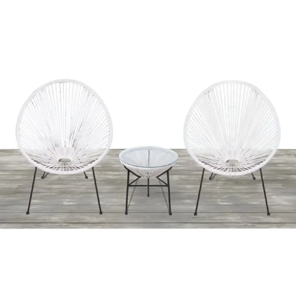 Outdoor 2 Person Sectional Conversation Arrange With Glass Table Rattan – White