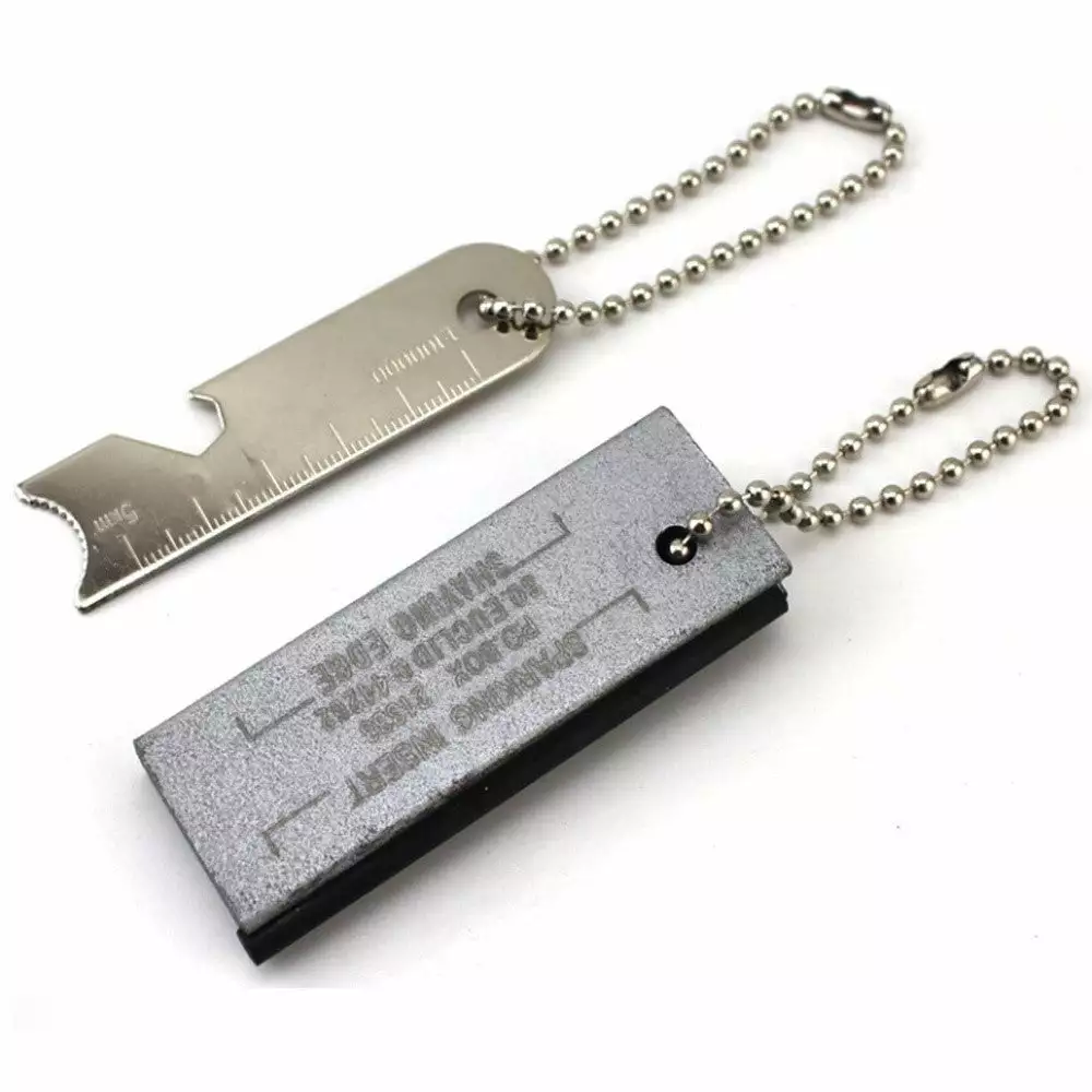 - Features: Flint flare starter and scraper. bottle opener. ruler.