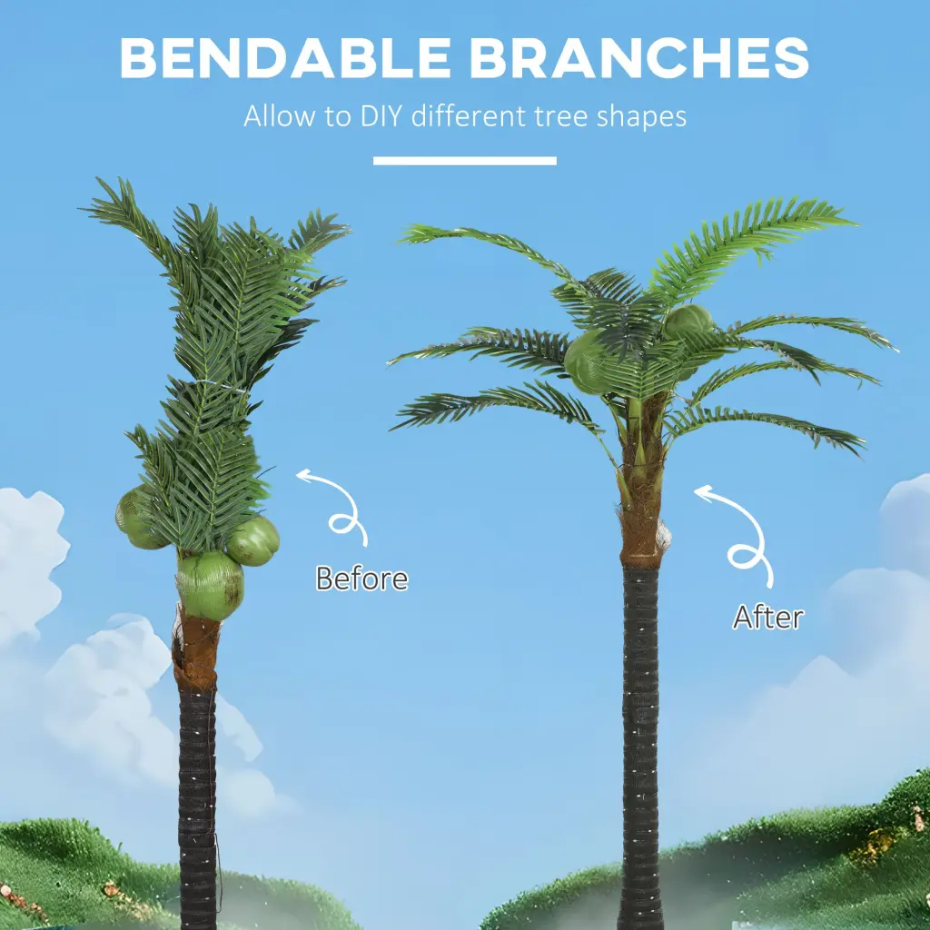Outsunny 6′ Artificial Lighted Palm Tree with 3 Coconuts, 240 Led Light, Hue Changing Light Up Tropical Palm Tree with Remote for Indoor, Outdoor, Pool, Party Dcor Characteristics: Artificial Palm Tree with 3 Coconuts: An injection-molded trunk, detailed palm fiber, and realistic texture make this tree a lifeli