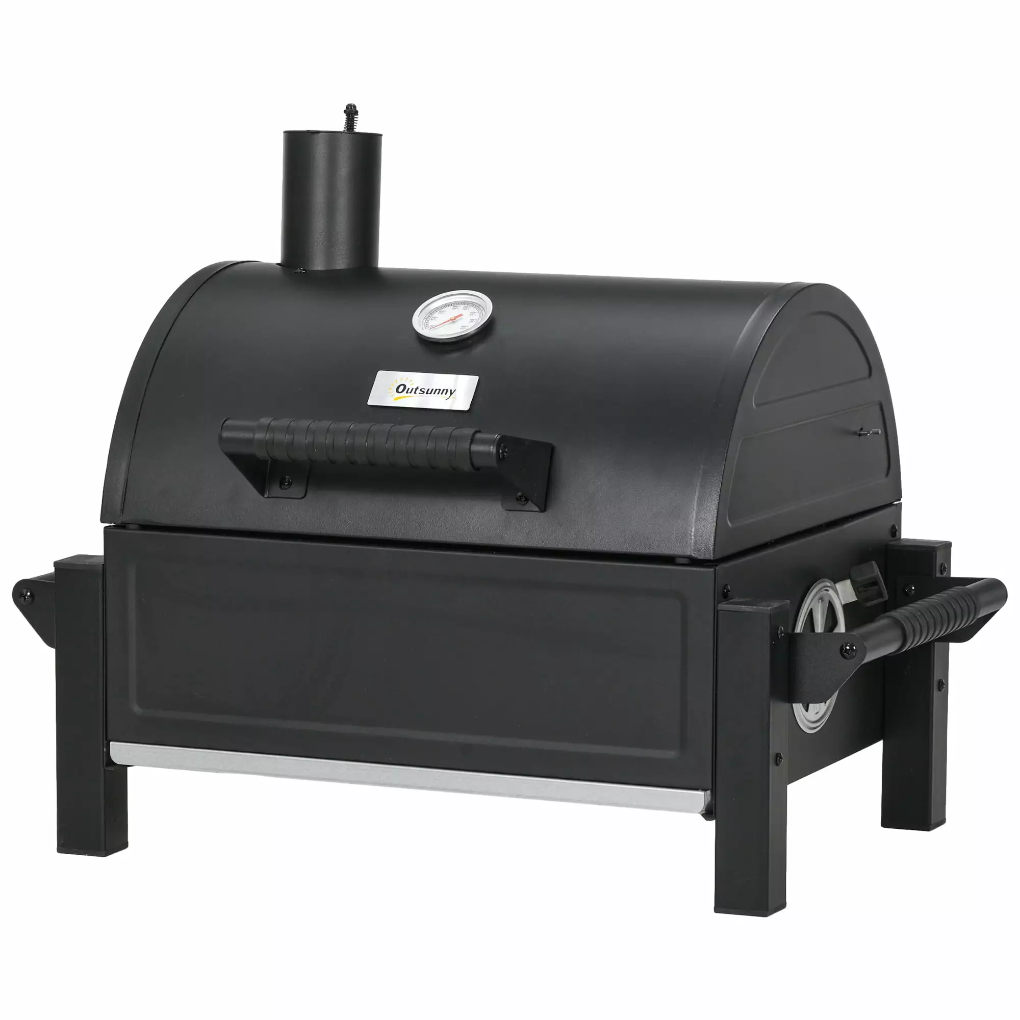 Bring bbq on the go. Outsunny has a small. portable charcoal grill with a spacious 235 square-inch surface. Get ready to party when you can serve up to 6 people. Bring BBQ to picnics. camping trips or tailgating events; it’s easy to carry and compact for a grill you can keep in your car. Seal in heat and seal in flavor with a lid featuring a thermometer and safe-to-the-touch handles. Controls on the vent and chimney let you adjust heat as you stay informed. Get out. cook out with Outsunny.