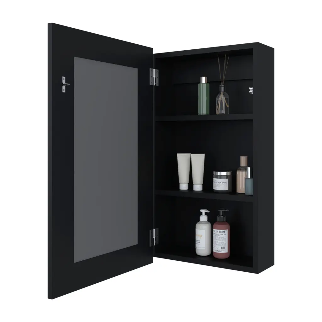 Parks Medicine Cabinet With Included Mirror, Black Specification: Parks medicine cabinet with mirror included,black “Wall-Mounted Bathroom Cabinet with Mirror Door and Three Internal Shelves.This wall-mounted bathroom cabinet is the perfect solution to keep your space organized and stylish. Featuring a door with an