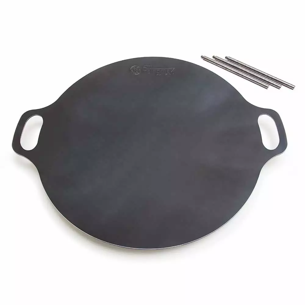Petromax Campfire Griddle and Fire Bowl. Steel with 3 Removable Legs for Outdoor Campfire Cooking. Grilling and Frying or Build Fire Directly in Bowl. 15". A delicious grilled feast. a juicy fry-up or a cozy campfire: It is all possible with the all-rounder made of steel. With a diameter of 15". meals for 1 to 3 persons can be prepared.Cooking. grilling and fryingWith the three feet. the Griddle and Fire Bowl stand steadily over an open fire. Its center becomes hotter than the outer surface. thus you can keep warm steaks. baked goods and so on. while vegetables are still frying in the middle. Before using it for the first time. the griddle must be seasoned. so that a patina forms at each use. making it naturally non-stick. Once it has been seasoned. the griddle becomes hot very quickly and you can begin to grill right away.Lighting a fireThe Griddle and Fire Bowl offers the opportunity to enjoy the crackling of burning wood logs and blazing flames under a starry sky. If you do not want to damage the ground with your campfire. this bowl is just what you need. You like to cook with our Dutch Oven This is also possible with the Petromax Griddle and Fire Bowl! It is sturdy in such a way that coals and briquettes along with a well-filled Dutch Oven are secure on the bowl.Practical transportThe fire bowl is not bulky at all. since its 9.1-inch-long feet can be easily unscrewed. Thus. the griddle can be packed in a bag and transported. Dimensions: 15" diameter x 11.3" high. Weight: 8.4 lbs.. Origin: Germany.