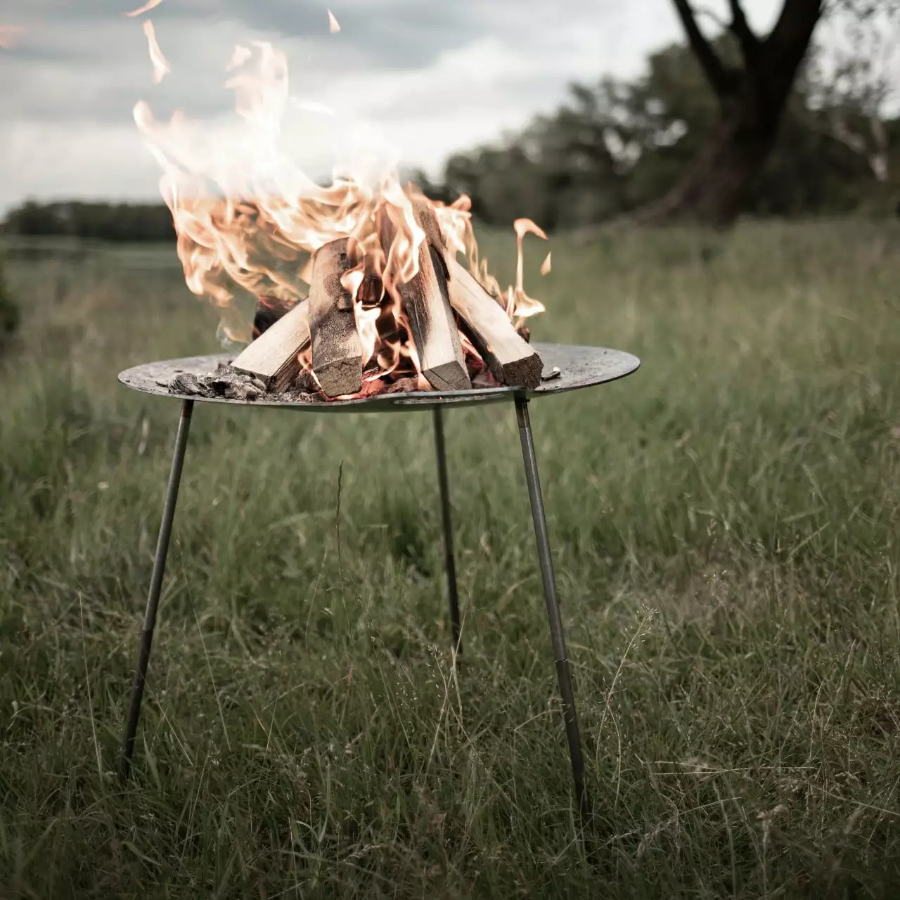 - In addition to its many cooking uses. you can enjoy the crackling of burning wood and blazing flames under a starry sky. Use the three legs for stability and to protect the ground surface.