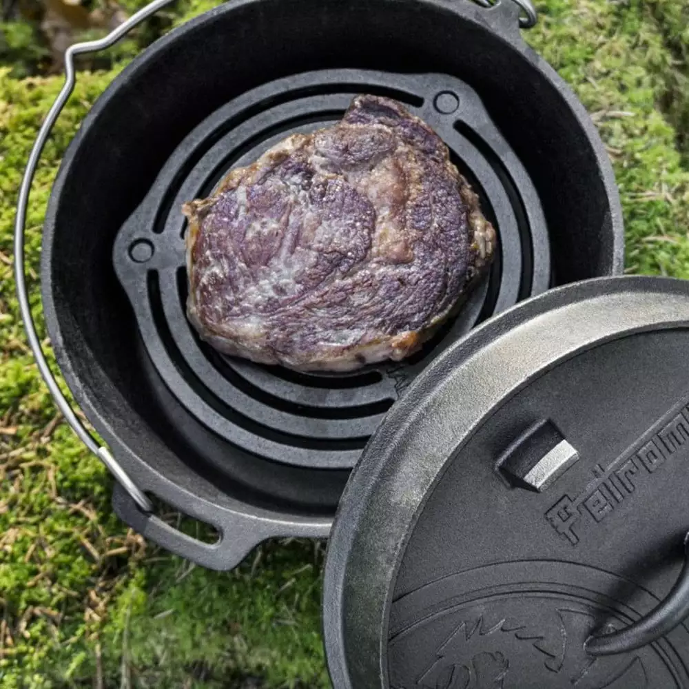 - The stack grate fits well in all Petromax Dutch Ovens 3.7 Quart and larger. You can use it immediately thanks to its seasoned finish.