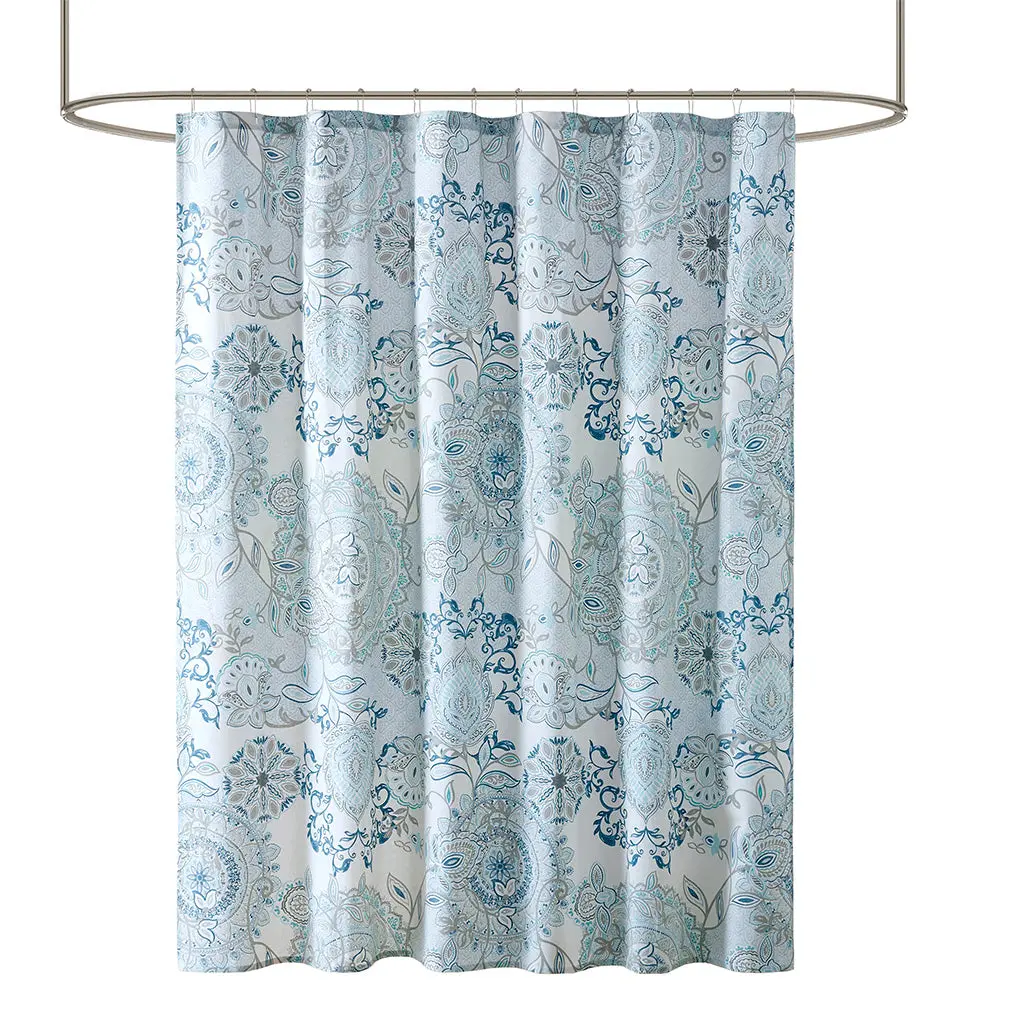 Printed Cotton Shower Curtain Specification: Specification Refresh your bathroom with our Madison Park Isla shower curtain. This printed shower curtain flaunts a beautiful floral and medallion motif in soft blue and neutral watercolor hues. While the 100% cotton percale base adds natural appeal for an organic touch t