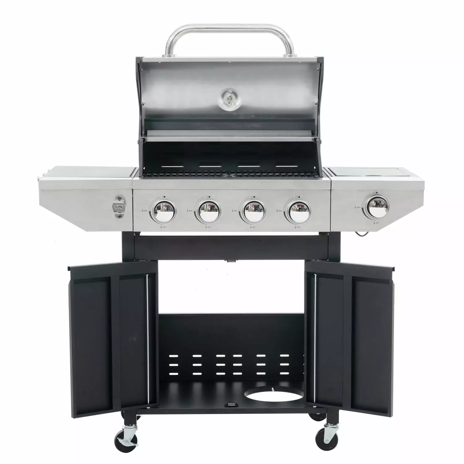 - Special Feature: Even Heating BBQ Grill.Cooking grates are made of durable. easy-to-clean cast iron material which helps prevent rusting and cracking. Flame tamers and stainless steel cooking grates help distribute heat evenly throughout the whole cooking surface.