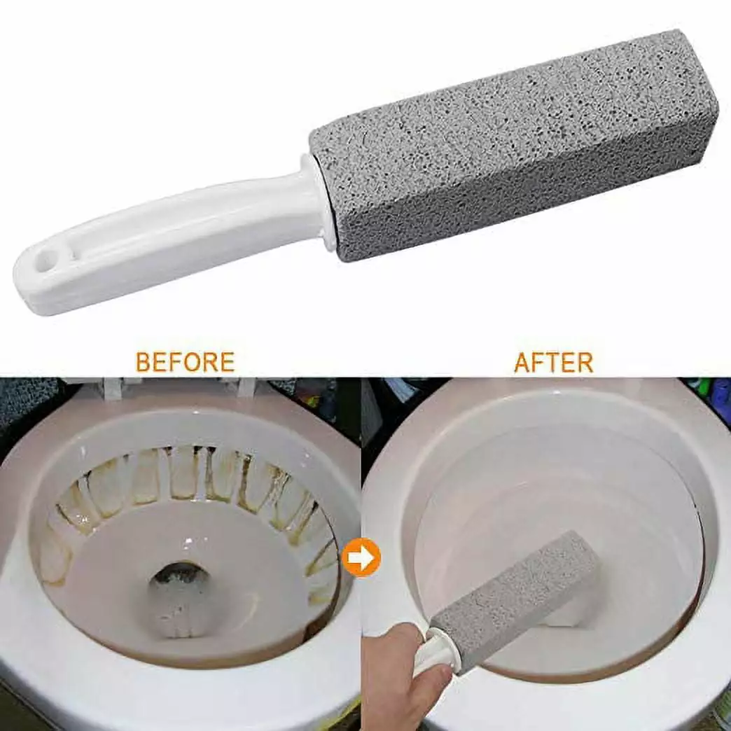 Effective Cleaning: Our Toilet Bowl Pumice Cleaning Stone can easily and quickly clean the stubborn hard-water deposits. accumulated calcium deposits. corrosion and rust stain. hard water stains. won’t scratch your ceramic tile and metal.Eco-Friendly and Safety: Made of 100% natural pumice. eco-friendly and safe for children. pets. plants and water. non toxic and odourless. It is preferred over chemicals and cleansers as the most effective method to remove stains.Super Convenient: The heavy duty pumice stone with a durable handle in the end. you can clean the hard water stains in your toilet bowl keeps your hands out of dirty. There is a hole at the top of the handle. you can hang it on the hinge clip to storage after using.Fits Most Household Cleaning: The pumice stone fits for cleaning barbecue racks. toilet bowl. swimming pool tiles. ceramic fixtures. laundry room fixtures. grills or metal appliances and even dead skins. Notice: Please wet the grey rubbing pumice stone before using it. It will have more powerful cleaning function. You can sharp the pumice stone with some tools to clean the narrow edges and corners in the toilet bowl or other fixtures.