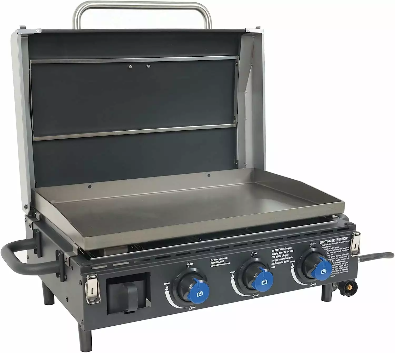 • Cook breakfast. lunch. or dinner while enjoying the outdoors with this portable 3-burner griddle