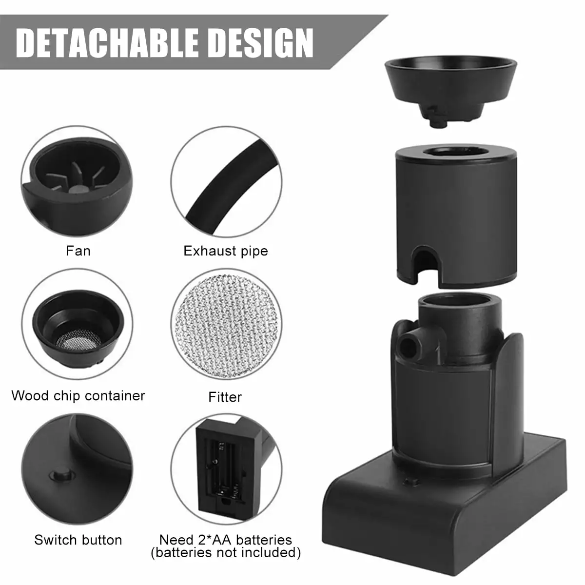 - Smoker Set:You will get 1X black smoker. 1X sawdust. 1X hose. 1X brush. 1X screwdriver. 2X filter. 1X manual and other complete accessories