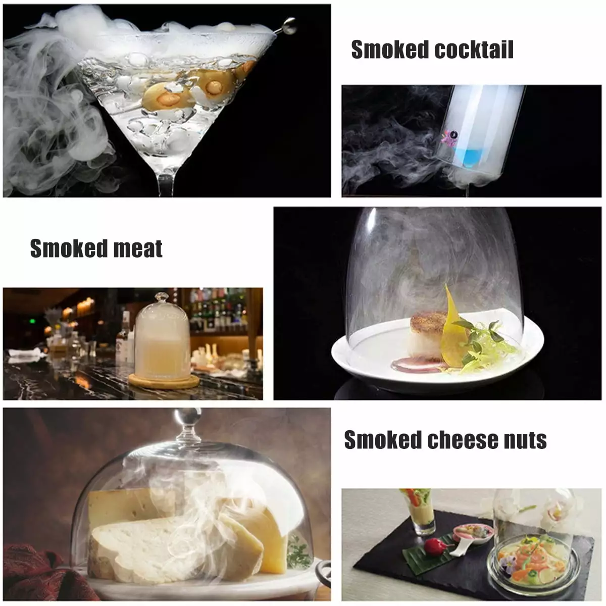 Our smoking gun is very gentle and will change the texture or temperature of food. It can be used for steak. salmon. cheese. desserts. fruits and vegetables.