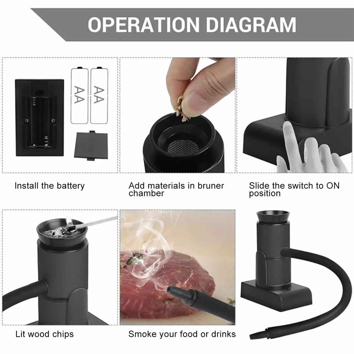 - Battery Power Supply:The power supply method of this cocktail smoker is to use 2 AA batteries. free your hands. you can get the taste and aroma of cold smoke in only 3~5 minutes