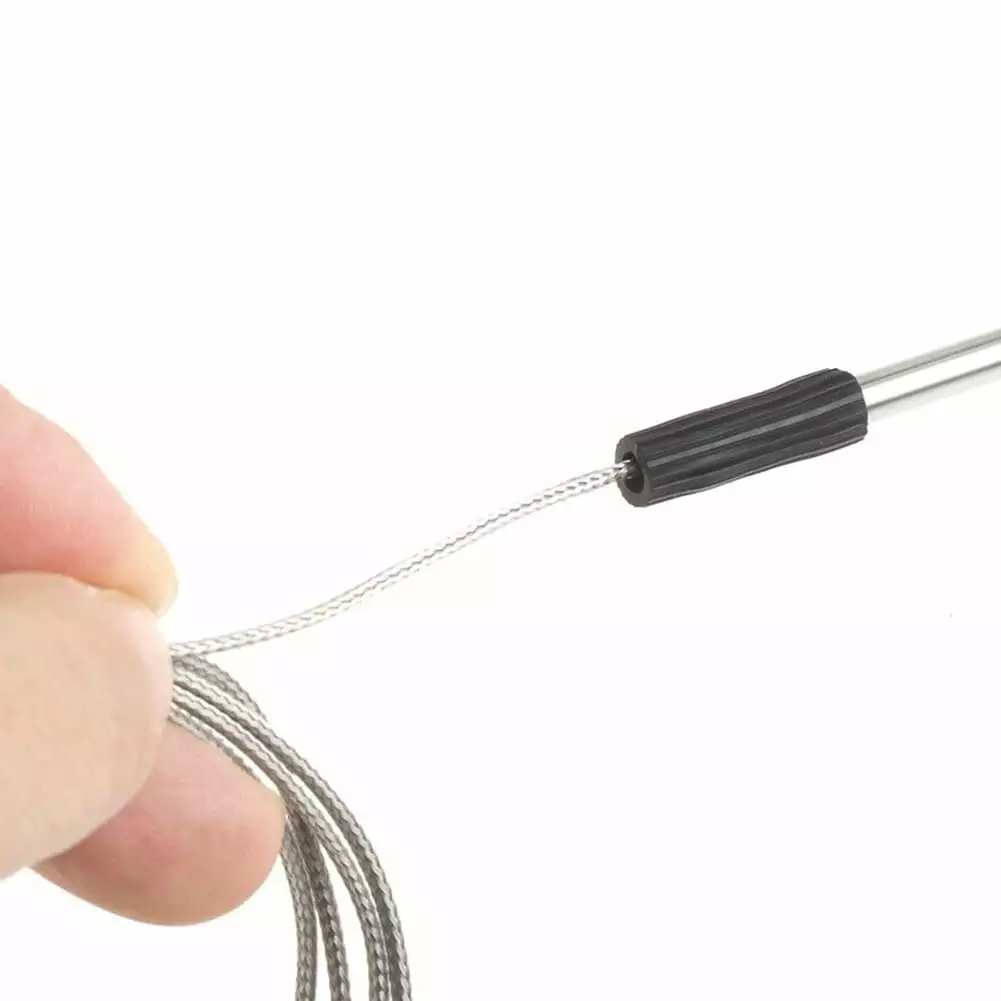- 5 Long Probe. Heat Resistant material helps to prolong the service life. non-slip design. balanced in the hand. easier to use in different foods. 4. L=123cm Please Note: 1. Clean and dry the probe thoroughly after each use with a damp cloth. 2. Always insert your probe in the thickest parts of the meat while avoiding fatty or boney areas. Details Material: stainless steel Size: Approx. L=123cm Color: as shown Package Contents: 1