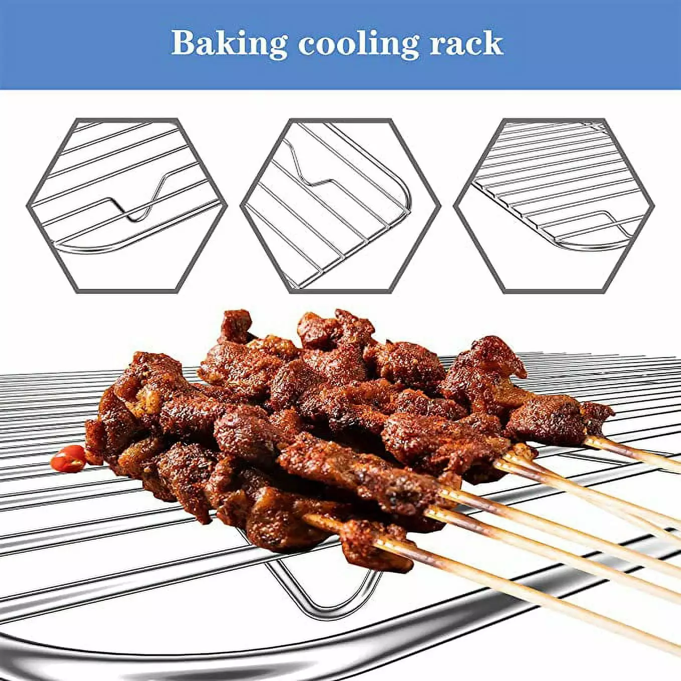 - [BAKING RACK]Cooking rack could meet different baking needs.dense grids avoid food sliding through the gap. 3 Cross Bars ensure stability and load-bearing. 6 x 0.75 inch supporting feet raise the flat rack up for better air circulation to make the food baked evenly. Also allow grease drip off to get a healthier meal. Good for cooling cookies or fried food. or drying vegetables and fruits