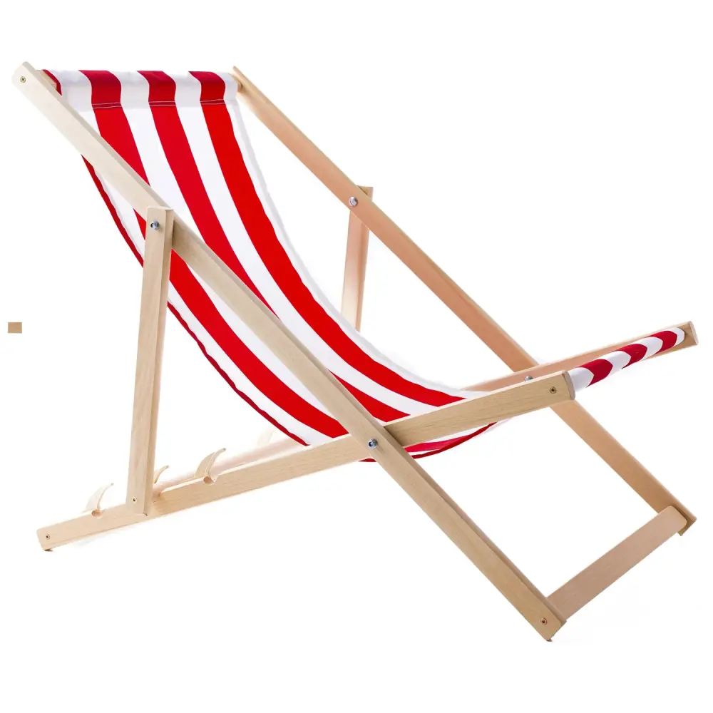 Set of 4 Comfortable Wood Deck Chairs with Red Stripes ✔ 100,000 Mechanical Operations Guaranteed ✔ Long-Lasting – 5 Year Warranty 🛒 Extend Your Patio Season