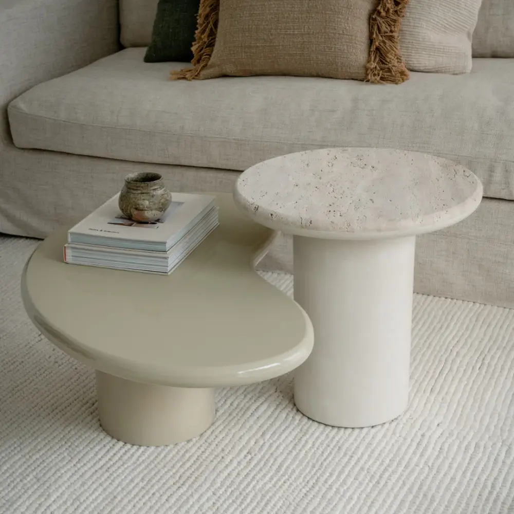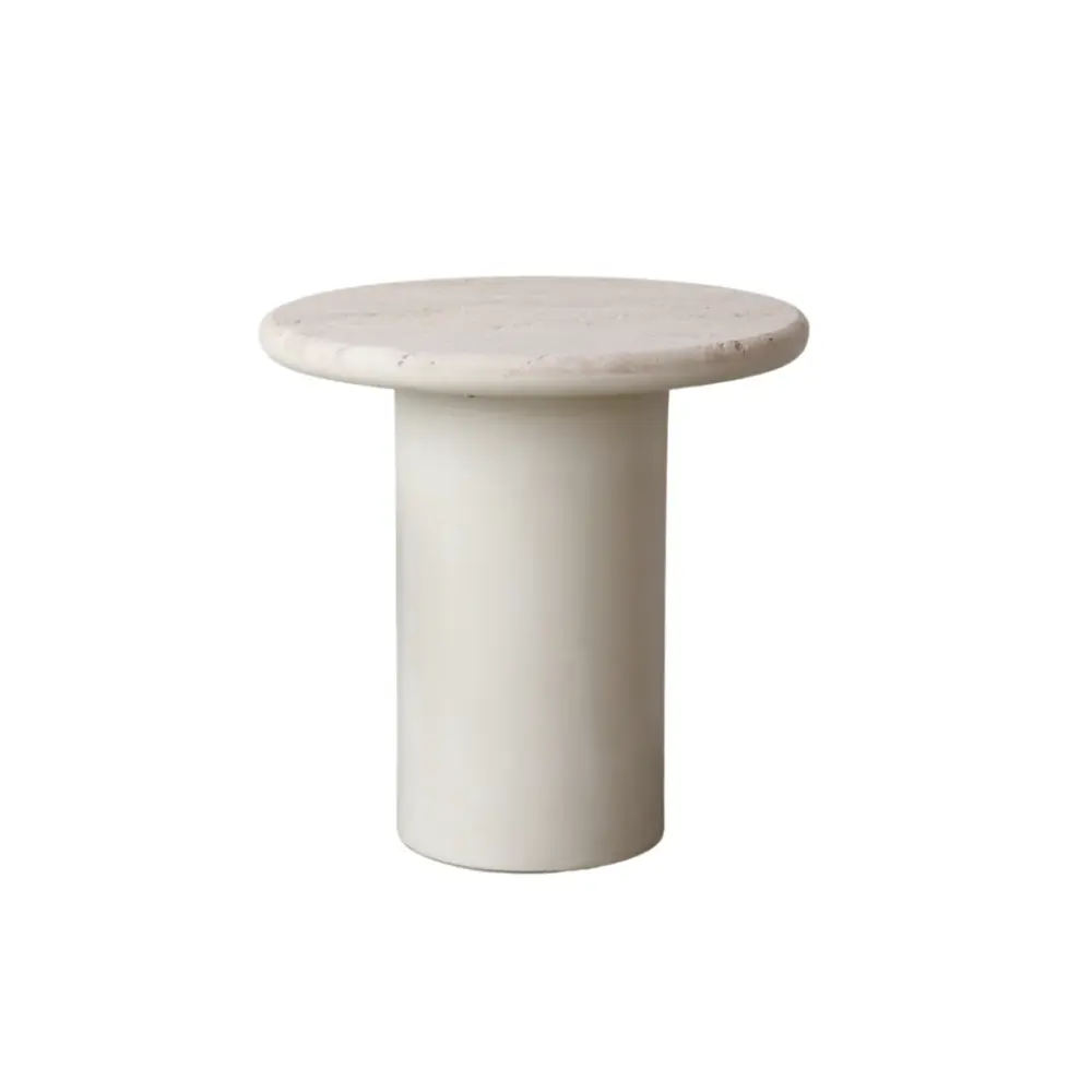 Side table Travertine Caen – Latte Stoneskin base ● Industry Leading Warranty ● High Quality Construction ▶ Limited Edition: Selling Fast
