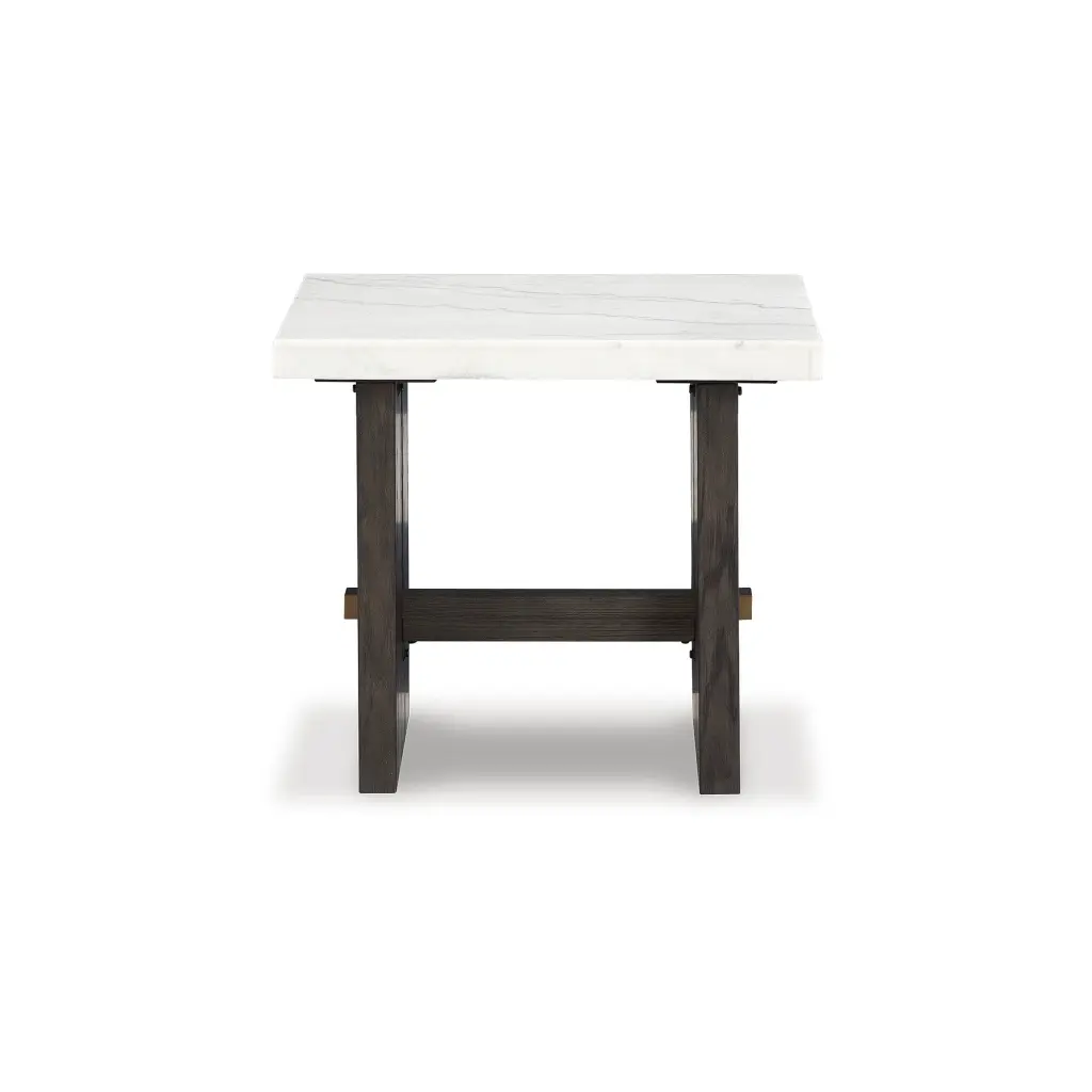 Dressed to thrill. this simply stunning end table offers a high-design look at a down-to-earth price. Ultra-sleek lines are accentuated with a dark waxy brown oak finish that’s so easy on the eyes. Clean-lined and modern. the plinth base and natural marble tabletop showcase quality craftsmanship and attention to detail. This table is the perfect sofa companion for a living room or family space. with a timeless look that’s made to last.